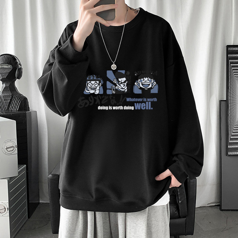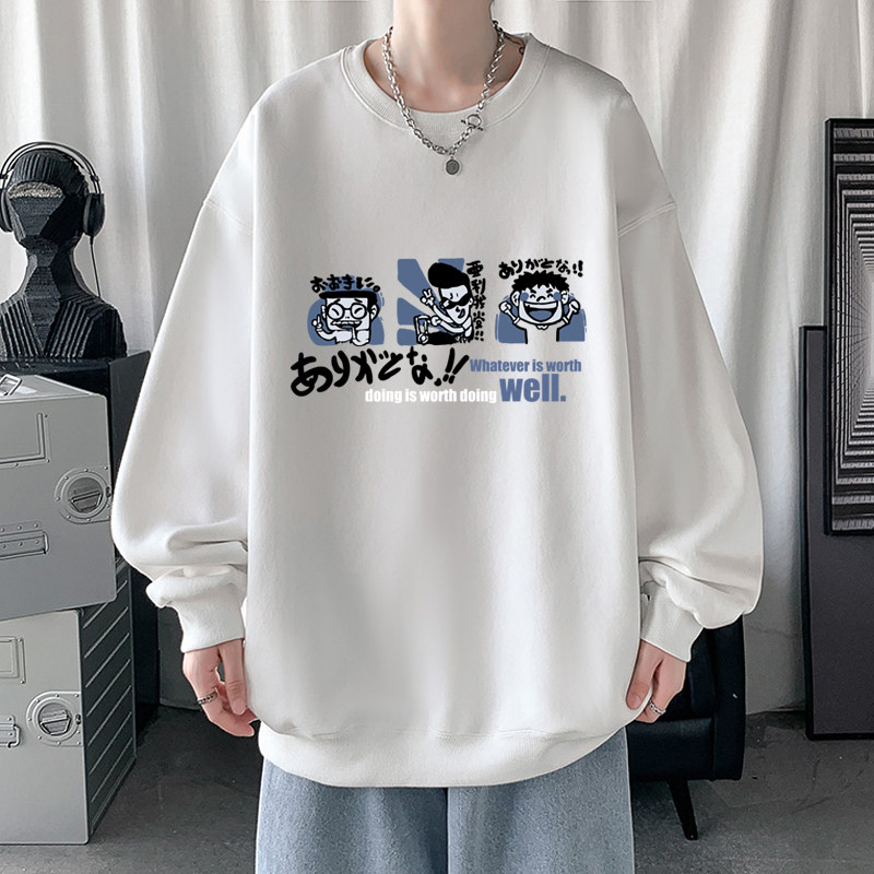 冬季加绒青少年男生圆领粉色卫衣不带帽男高中初中学生加厚秋冬款