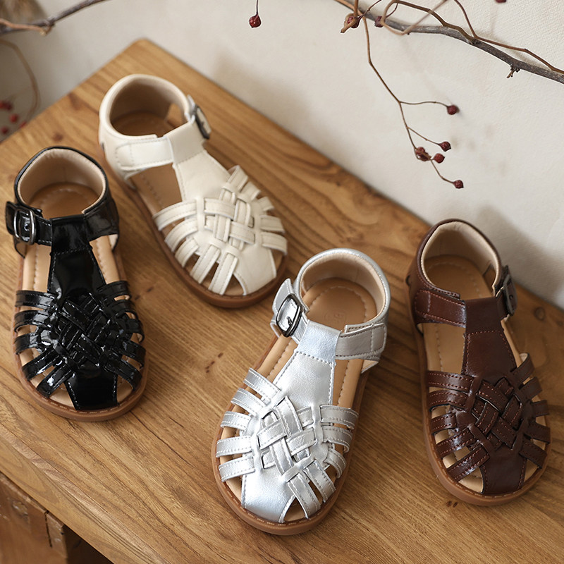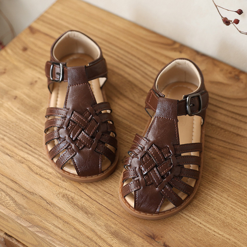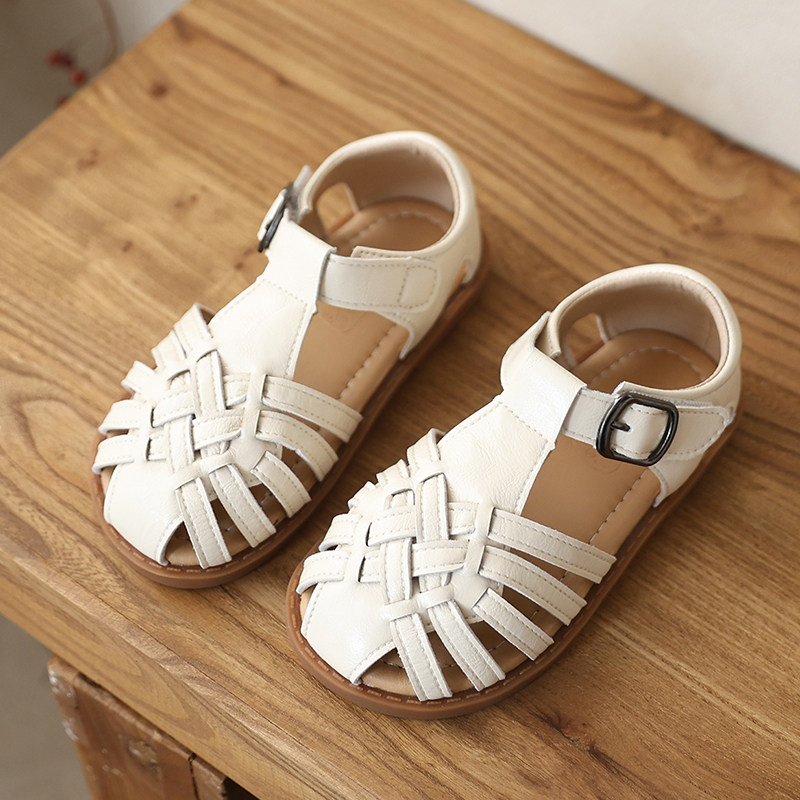 时尚百搭女童春夏鞋子防滑软底宝宝包头包跟凉鞋编织罗马风沙滩鞋
