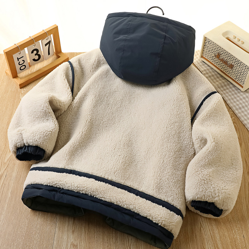男童羊羔绒棉服秋冬新款2026儿童连帽夹棉外套中大童撞色拼接棉衣