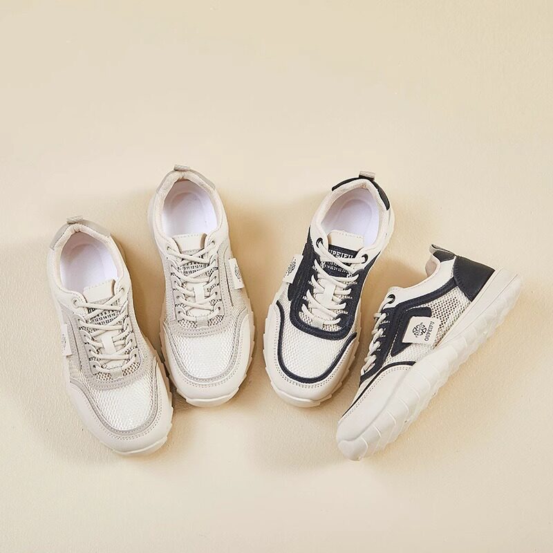 镂空网面透气运动鞋女鞋2025夏季新款薄款真皮软底防滑休闲半拖鞋