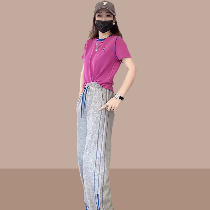 欧货休闲运动套装夏装女2026年新款时尚洋气减龄阔腿裤两件套显瘦