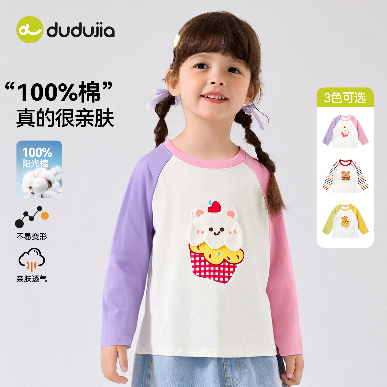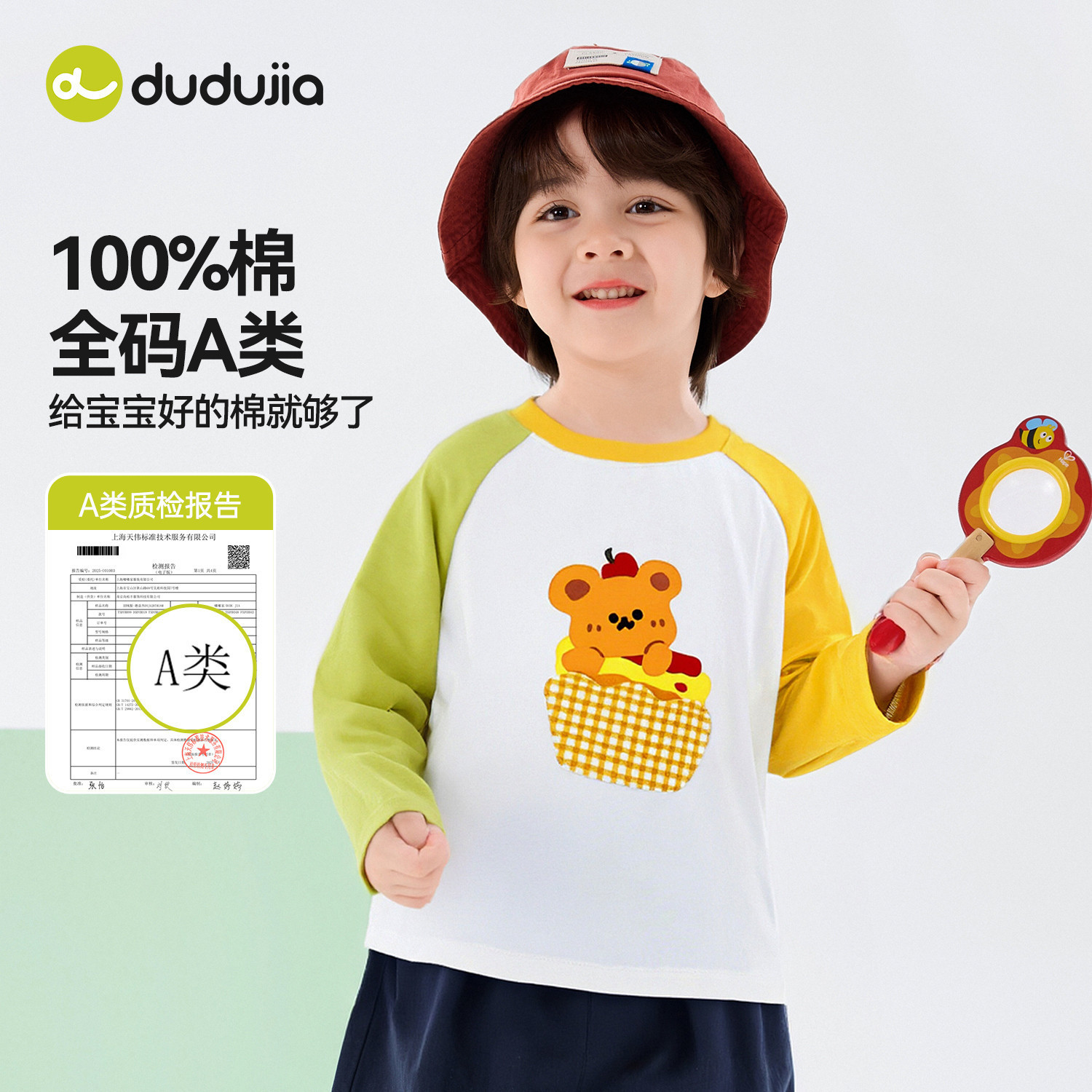 【100%棉】嘟嘟家男童纯棉T恤春季儿童长袖上衣女童打底春装童装
