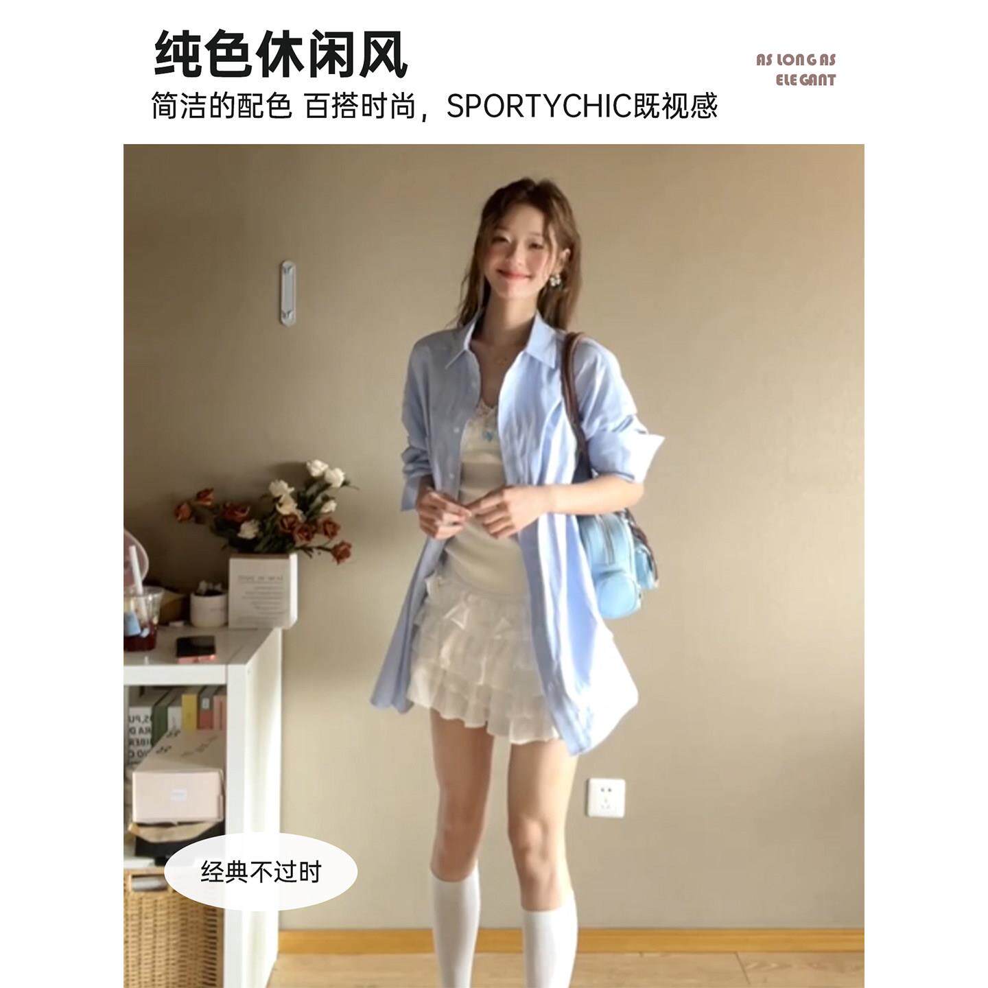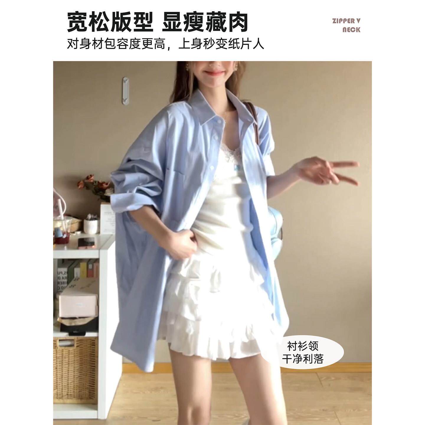蓝色衬衫女款2026新款早春季薄款外套纯棉宽松防晒上衣轻奢高级感