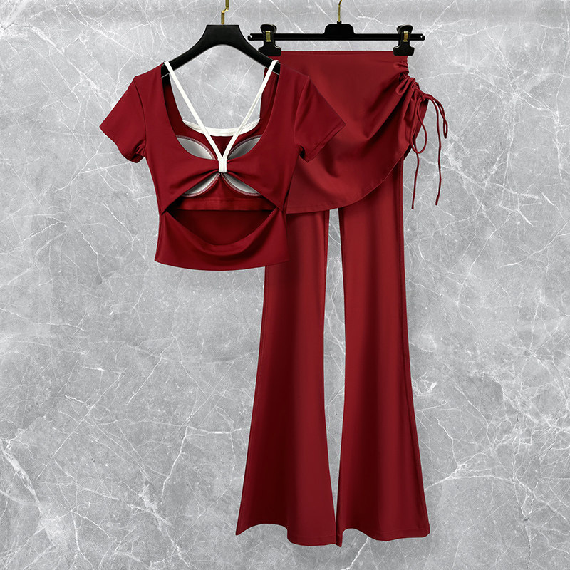 性感美背夏天瑜伽服套装女带胸垫运动健身房普拉提训练上衣喇叭裤