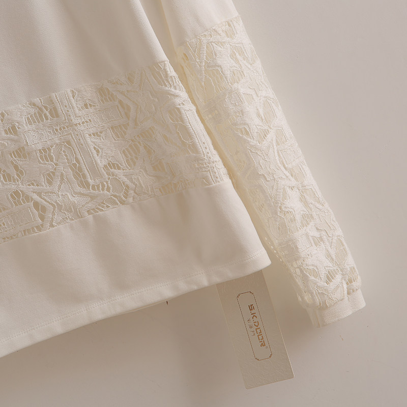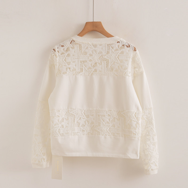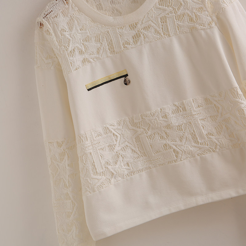 专柜569元【S】高端品牌女甜美圆领卫衣女春新款蕾丝拼接时尚上衣