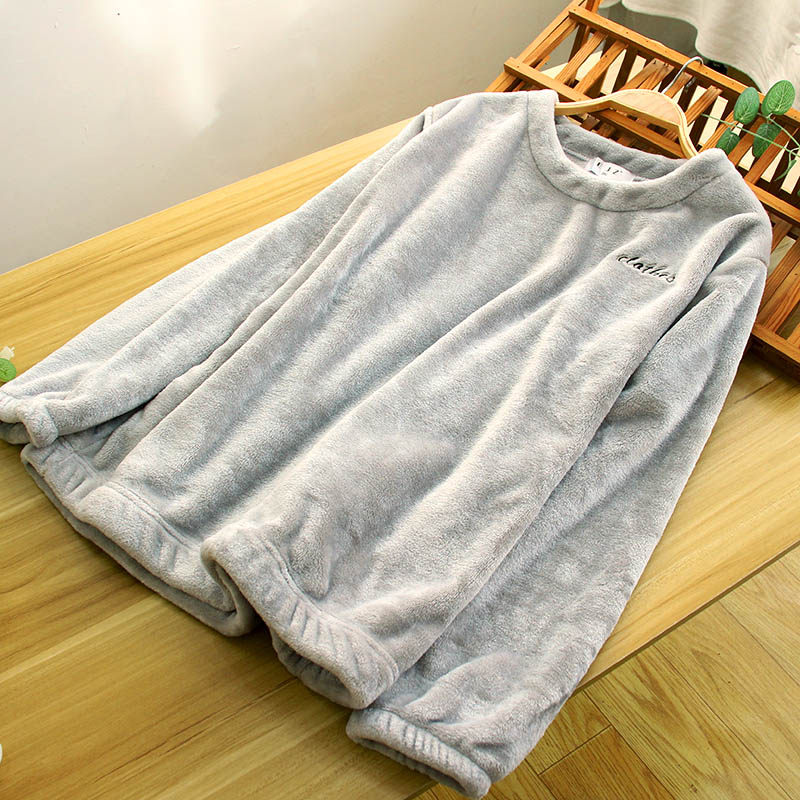 情侣睡衣上衣男冬季法兰绒女款秋冬季套头加绒加厚暖暖珊瑚绒家居