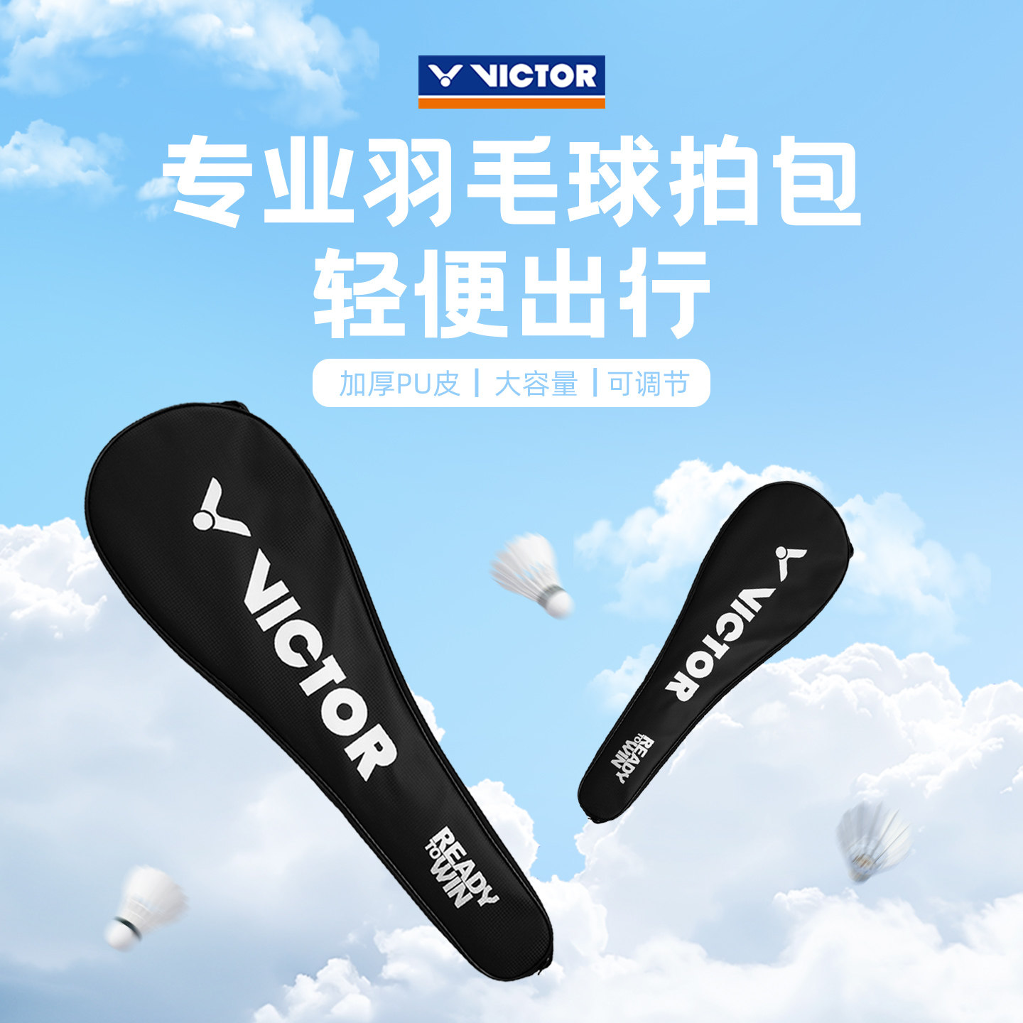 victor/胜利羽毛球拍袋威克多单肩2支装拍套pu防水便携大收纳包袋