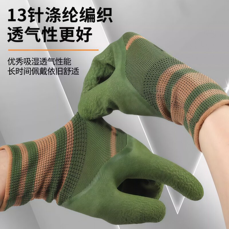 手套工作劳保耐磨防滑加厚劳动乳胶橡胶劳工防护干活工地浸胶防水