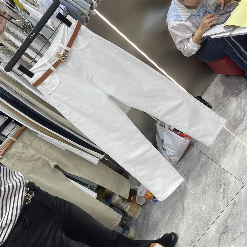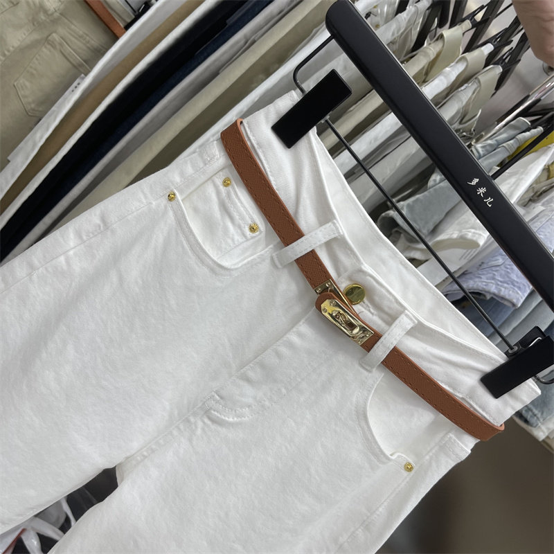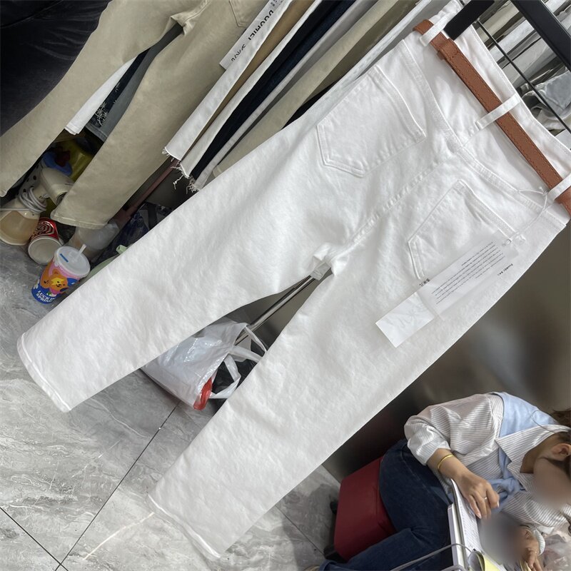2026年春夏新款高腰白色水洗棉弹气质简约白色牛仔裤九分直筒裤女