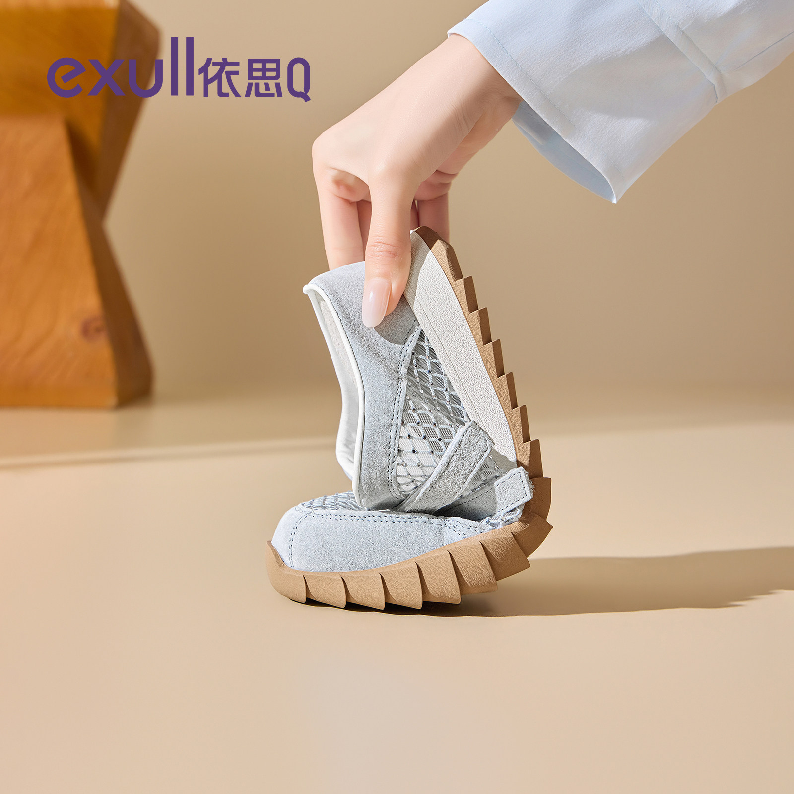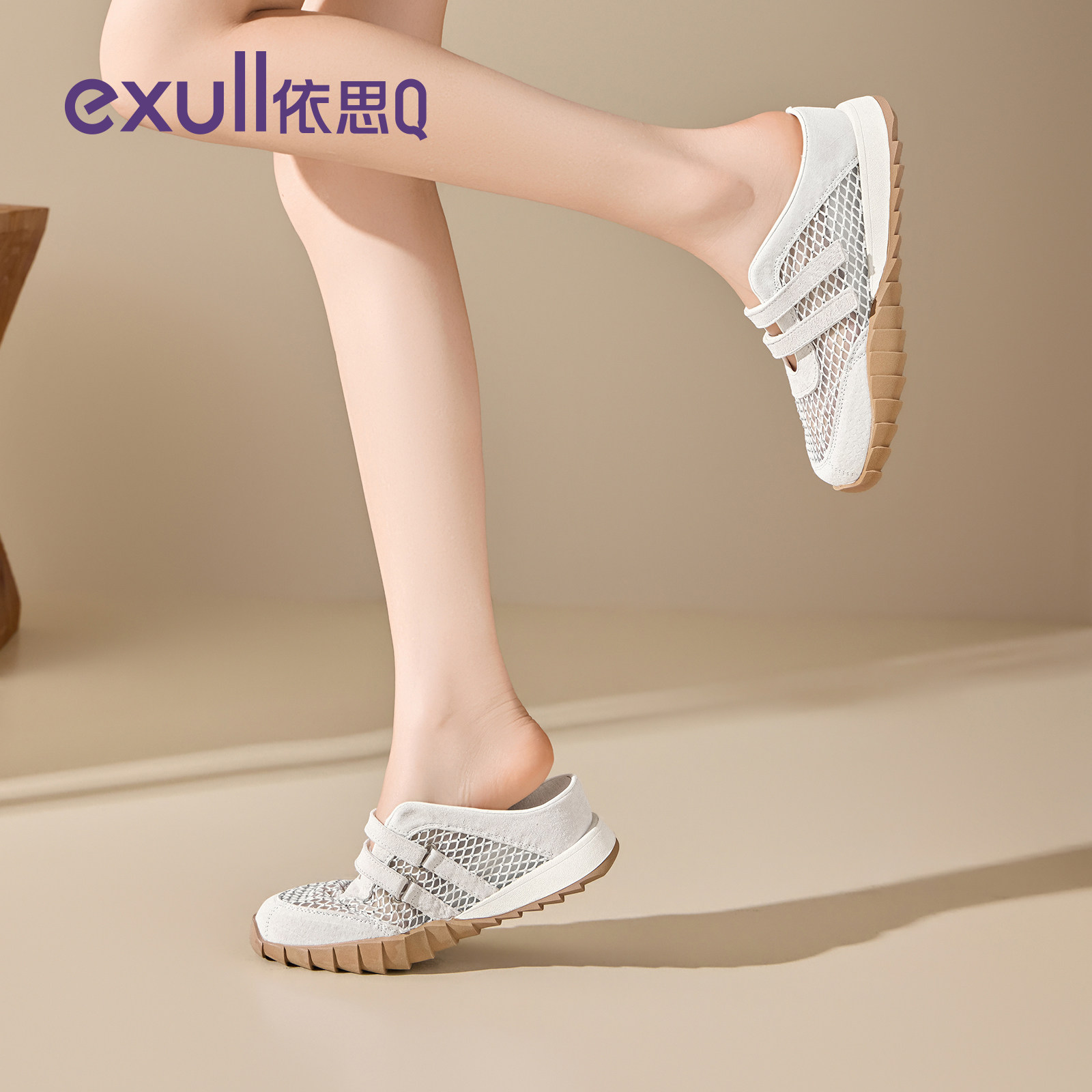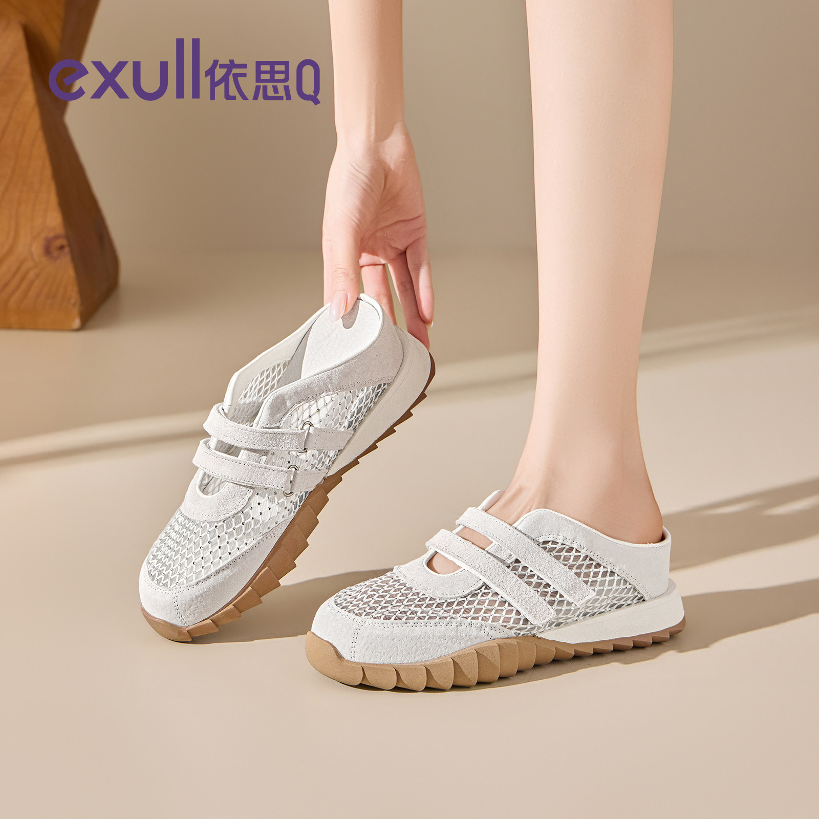 依思q小个子包头半拖鞋女外穿内增高镂空网面透气软底小白鞋拖鞋