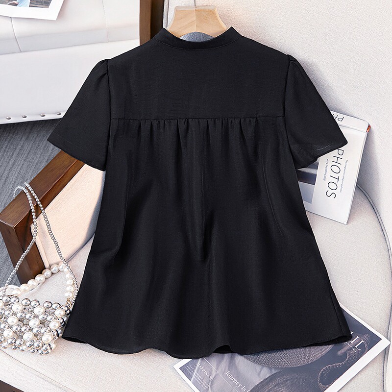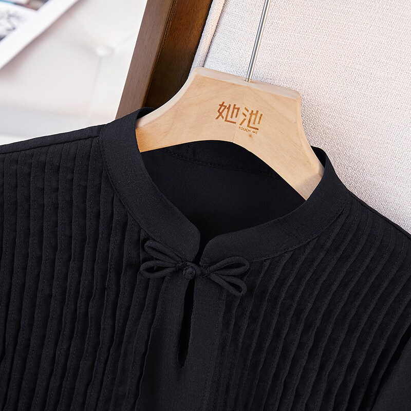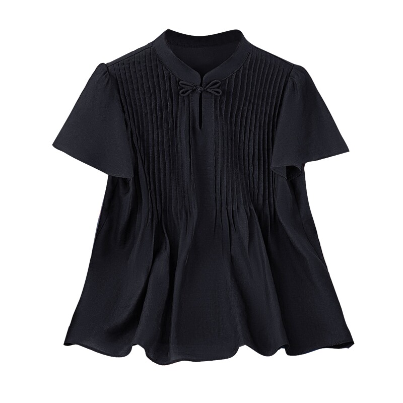她池立领衬衫2026夏装新款女装新中式盘扣捏褶显瘦短袖套头衬衣