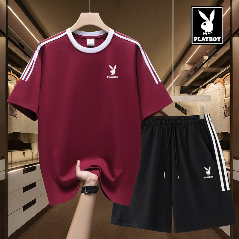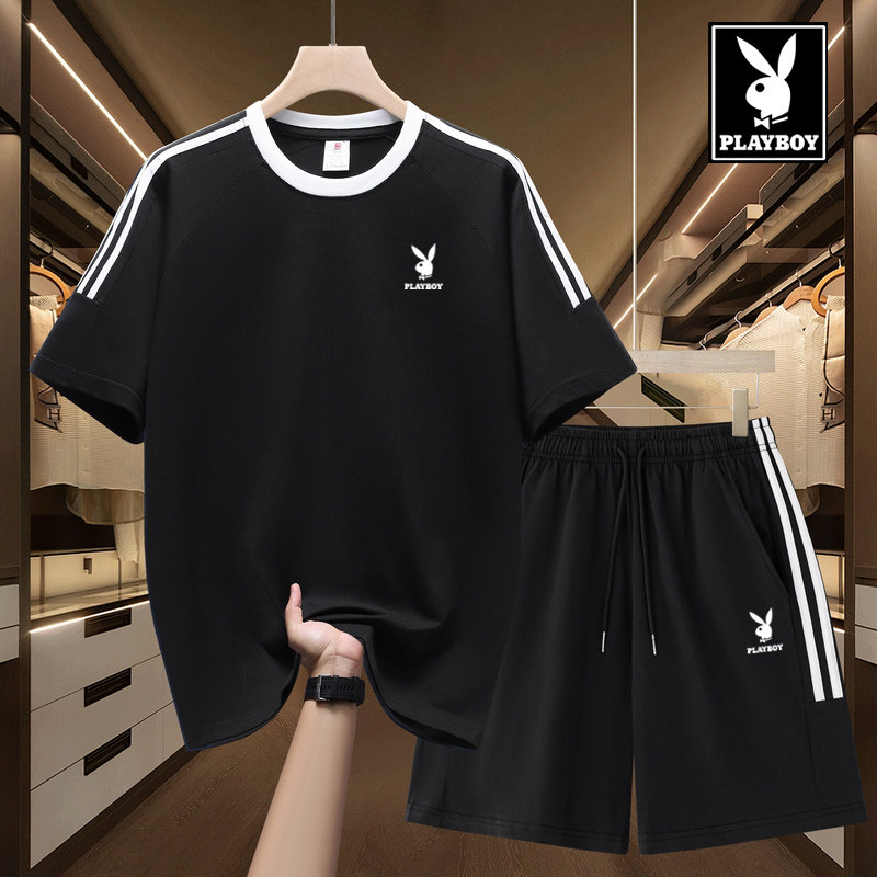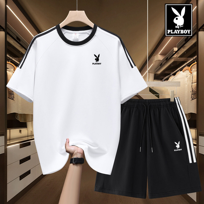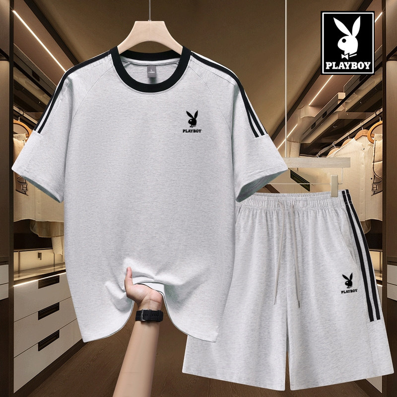 花花公子休闲运动套装男夏季新款纯棉t恤宽松短袖短裤搭配两件套