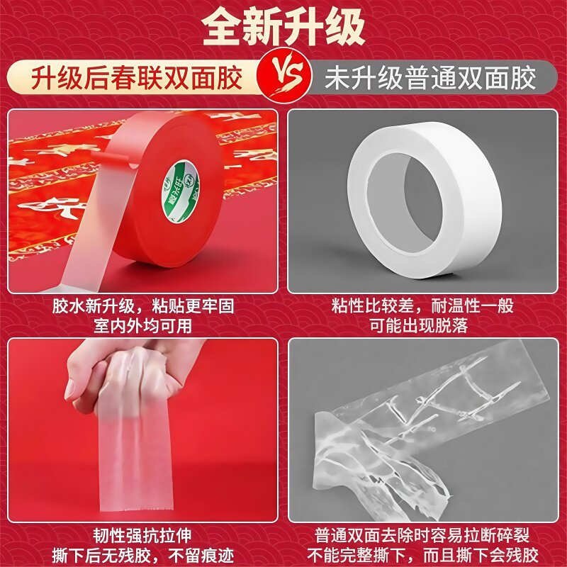 贴对联专用网格双面胶高粘度不留痕春节年画装饰双面贴粘春联胶带