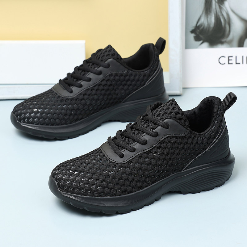 夏季薄款女鞋2026新网面透气轻便运动鞋软底不累脚黑色防滑休闲鞋