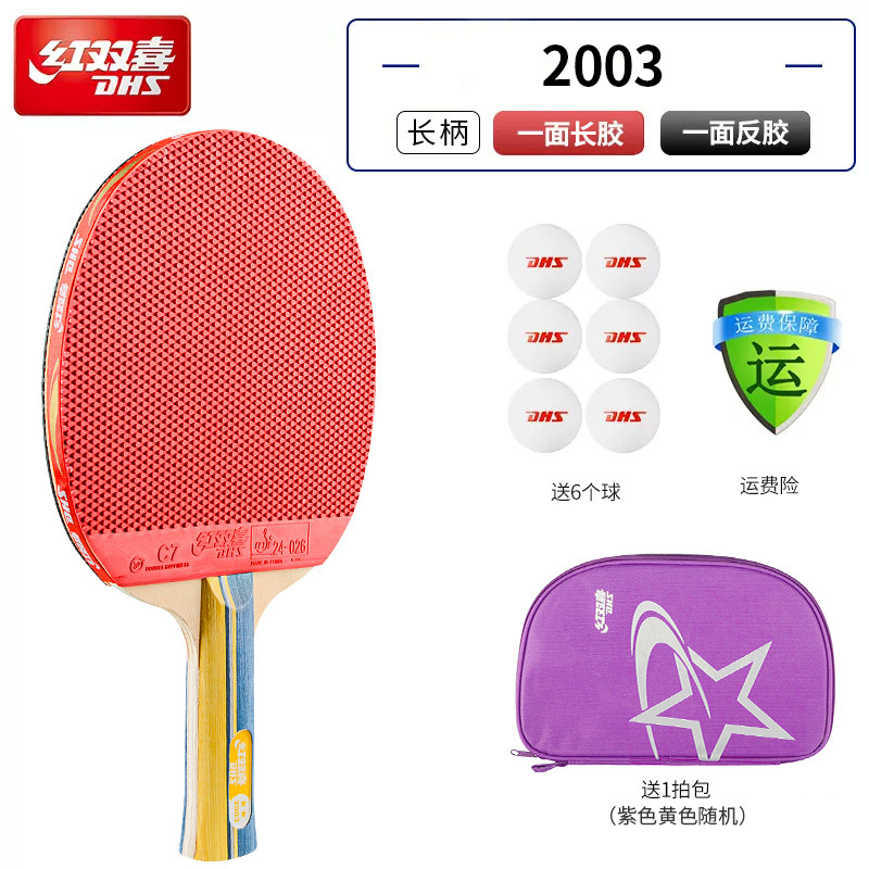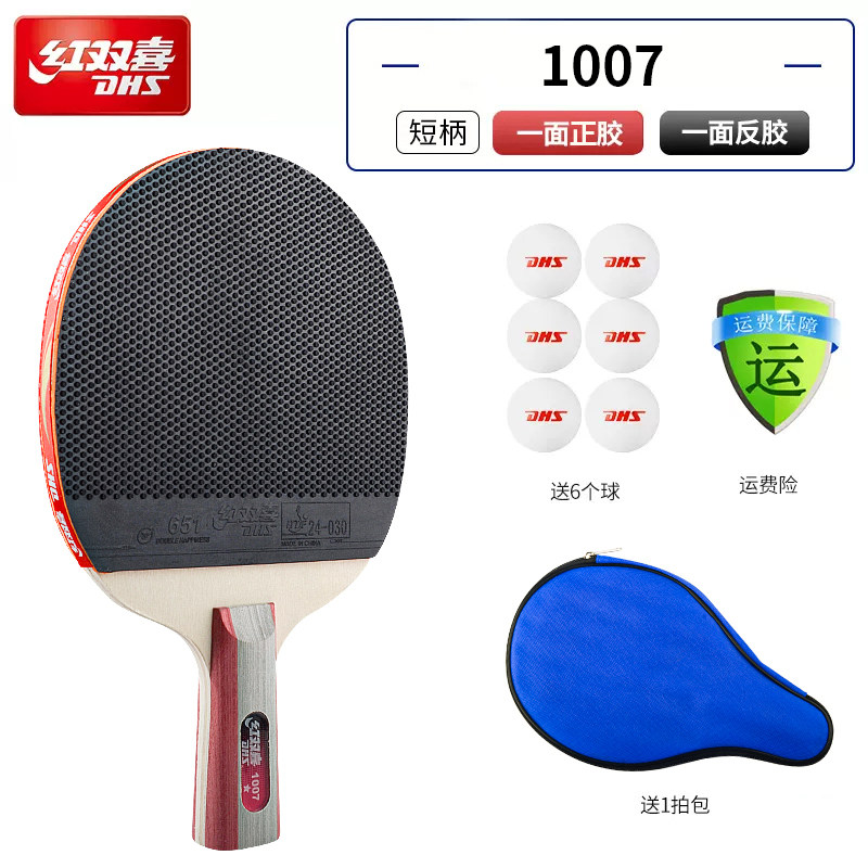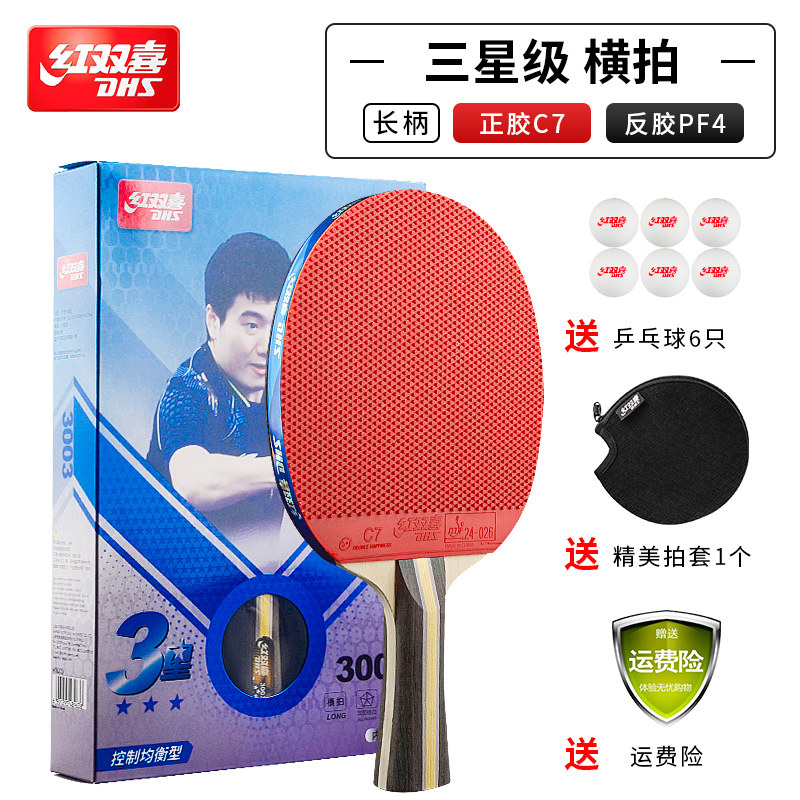 红双喜/DHS乒乓球拍颗粒长胶反胶3星四星专业兵乓球横拍长柄单拍