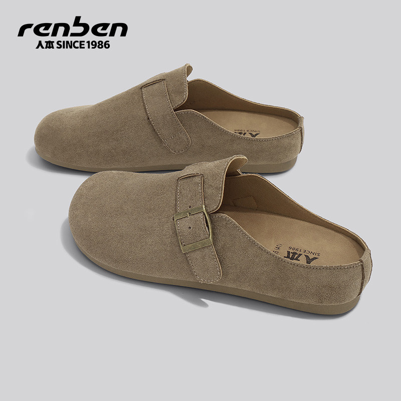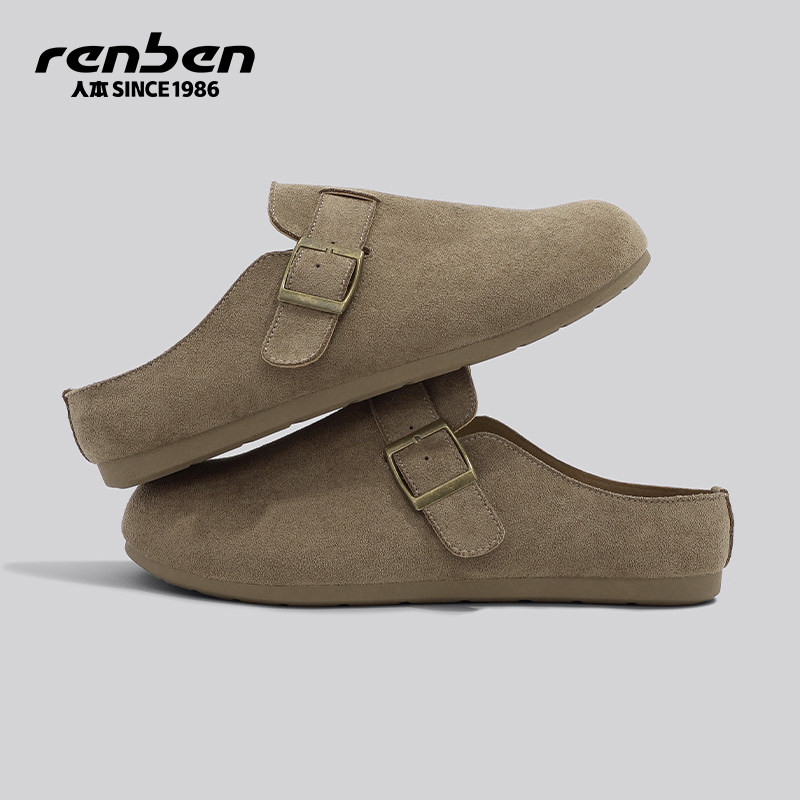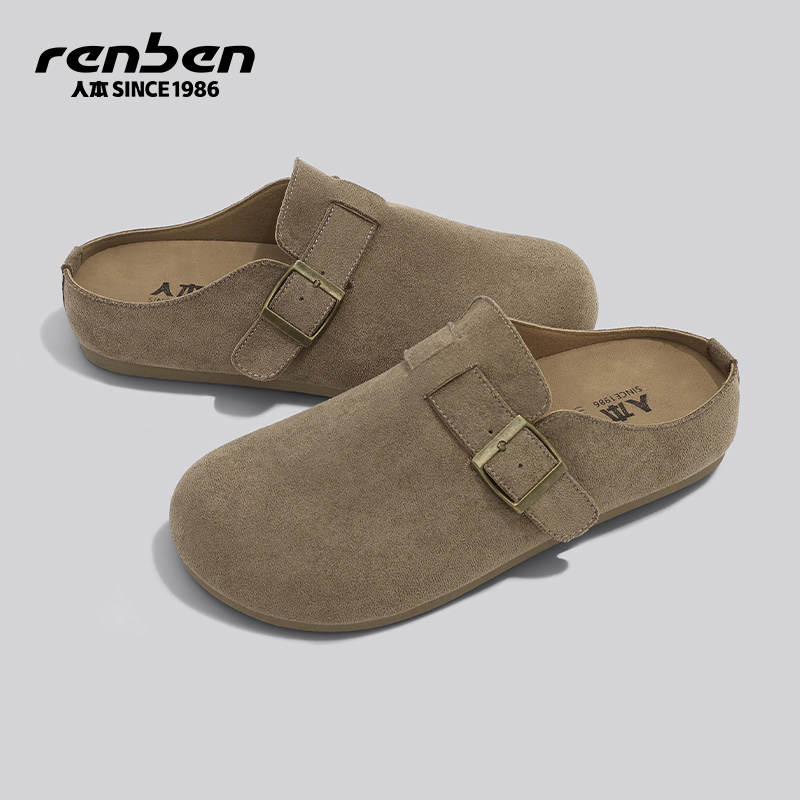 人本半拖勃肯鞋男2026春夏季新款内增高轻便平底一脚蹬通勤情侣鞋