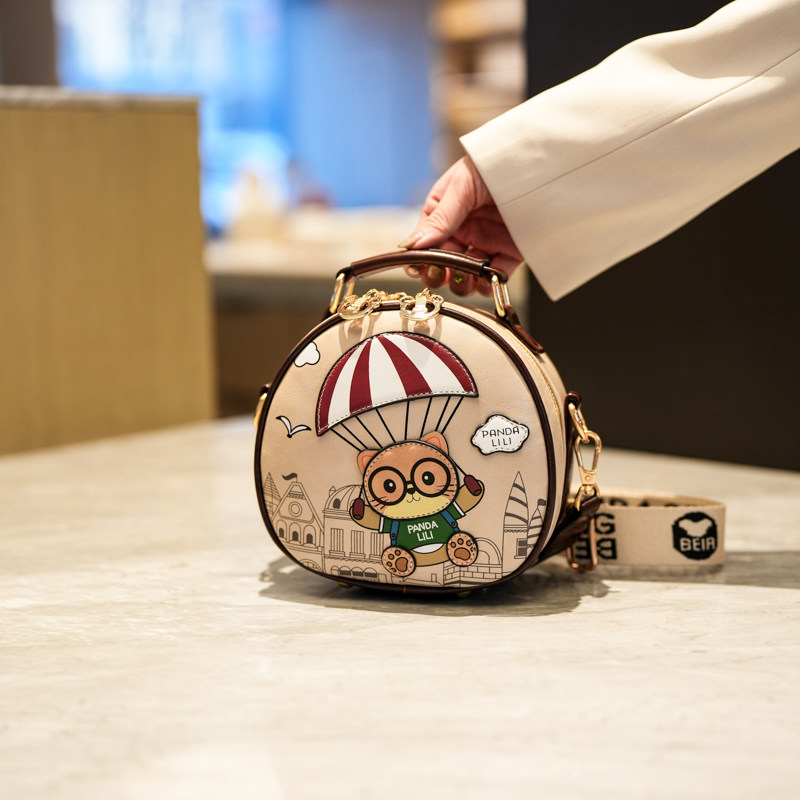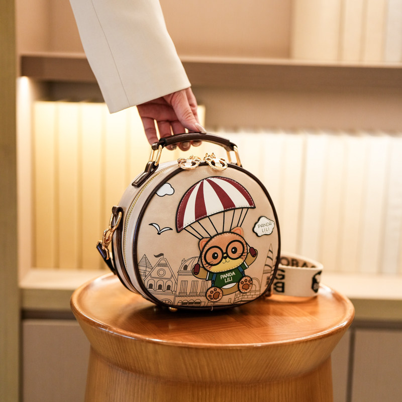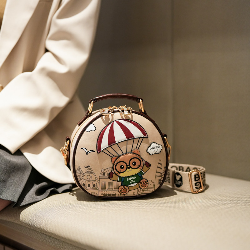 宽肩带撞色通勤小圆包女小包包2026新款单肩斜挎包可爱卡通手机包
