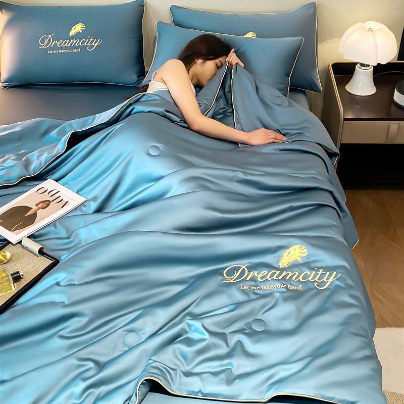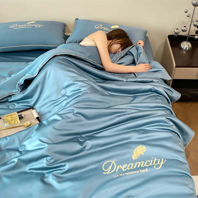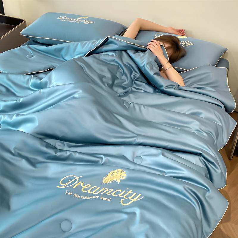 冰丝夏被四件套双人单夏凉被空调被三件套夏天薄款被子床上可机洗