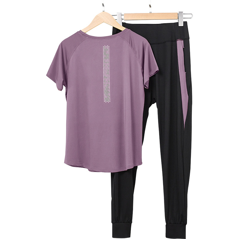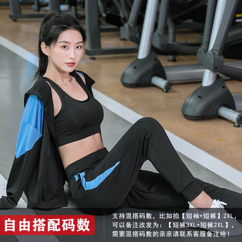 大码瑜伽服女装运动套装胖MM200斤休闲短裤跑步服短袖健身衣春夏