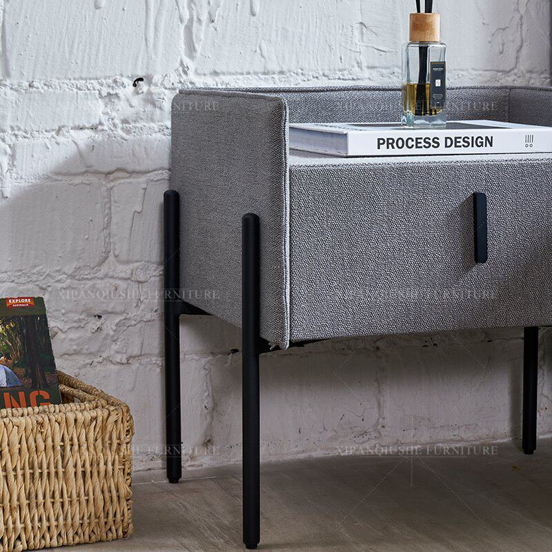 意式极简布艺床头柜轻奢碳素不锈钢床边收纳储物北欧卧室边几随床