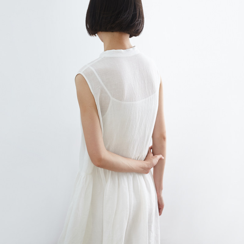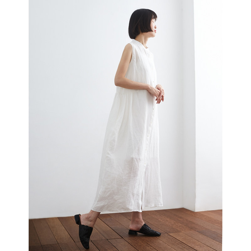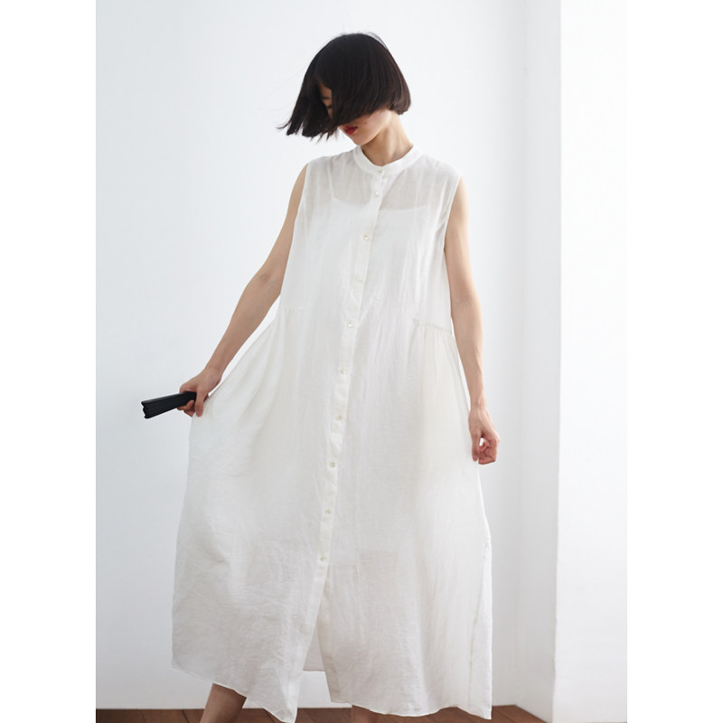 清仓/仙气冰白色亚麻气质背心裙 小鱼夏季宽松无袖长裙长款连衣裙