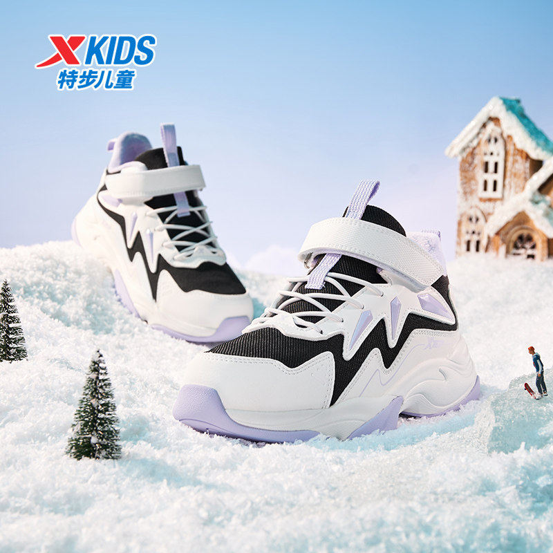 特步童鞋秋冬新款中大童女童加绒雪地休闲鞋儿童运动防滑耐磨棉鞋