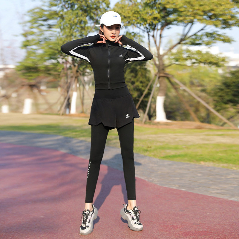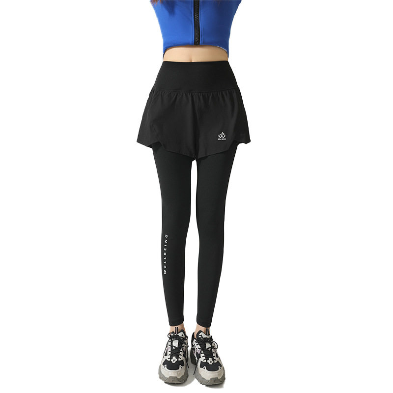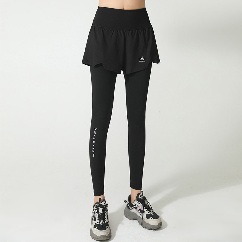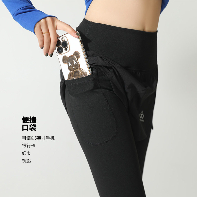春秋跑步假两件长裤女可放手机二合一后腰口袋专业晨跑压缩运动裤