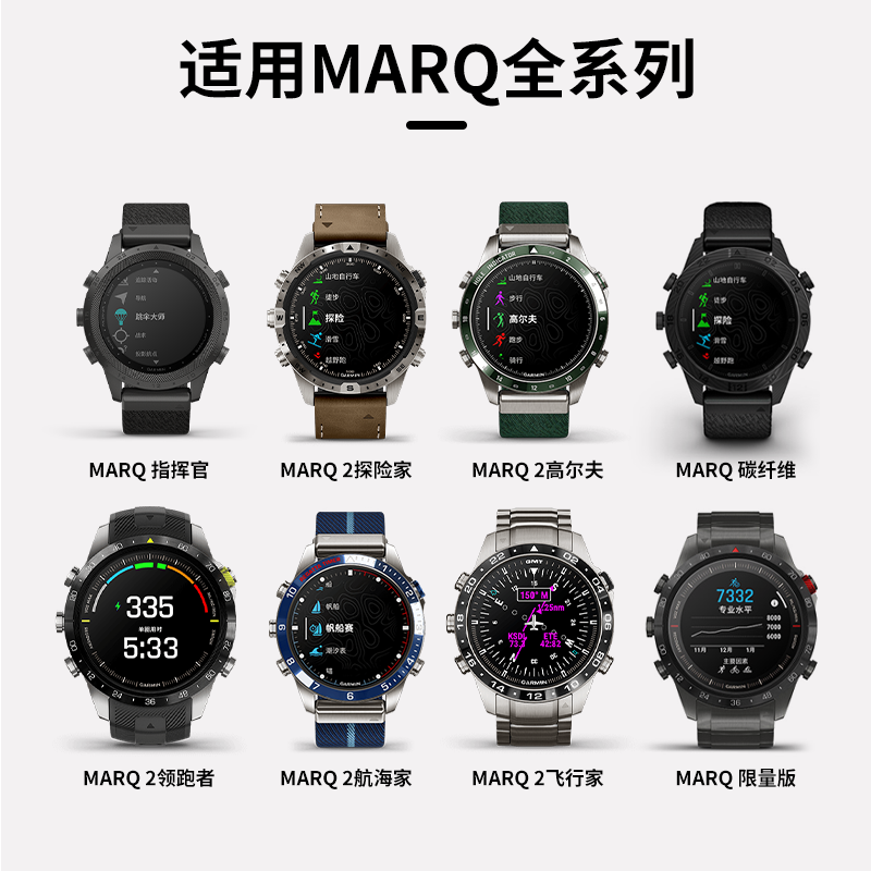 佳明MARQ2/MARQ飞行家领跑者高尔夫原装硅胶编织尼龙钛合金表带
