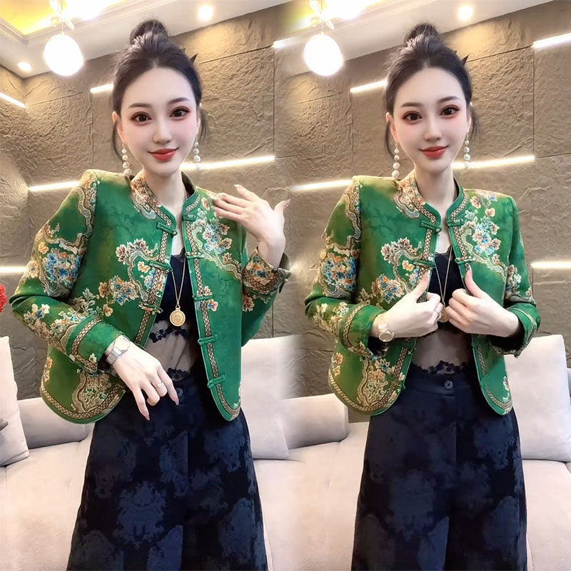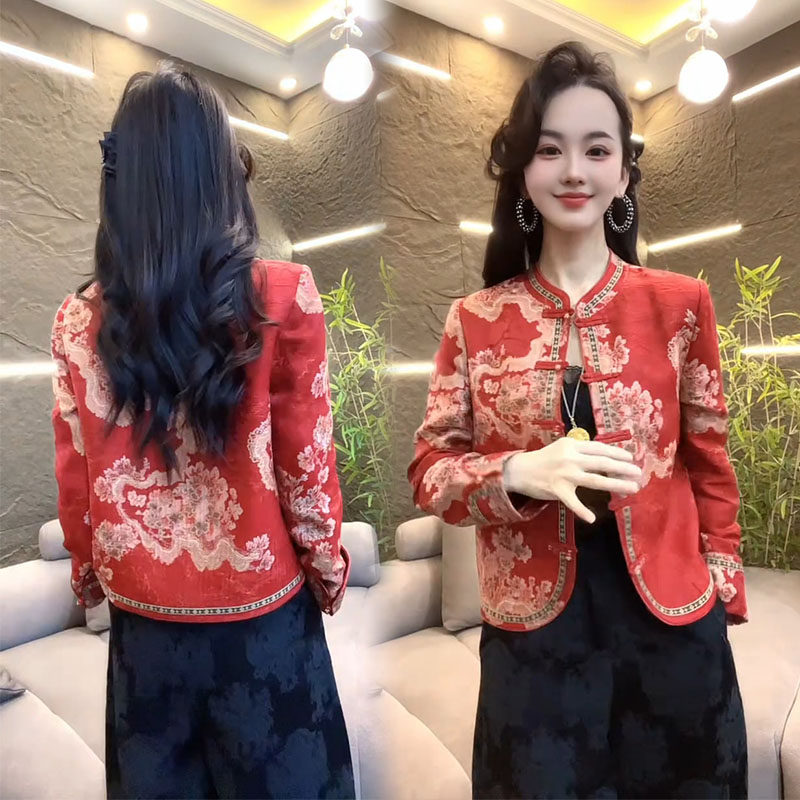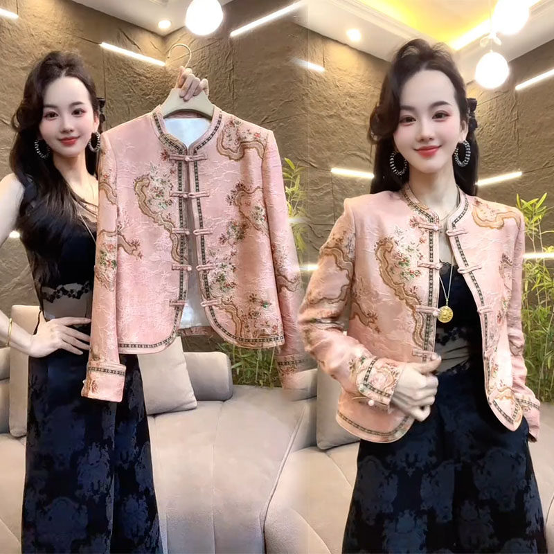 新中式短外套女2026春季新款气质女神范国风盘扣提花高档显瘦上衣