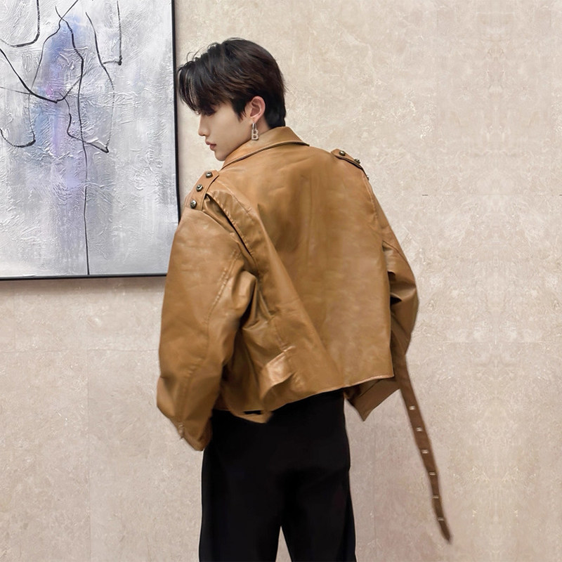 美式垫肩皮衣外套男款秋季潮牌短款pu皮夹克高级感痞帅炸街机车服