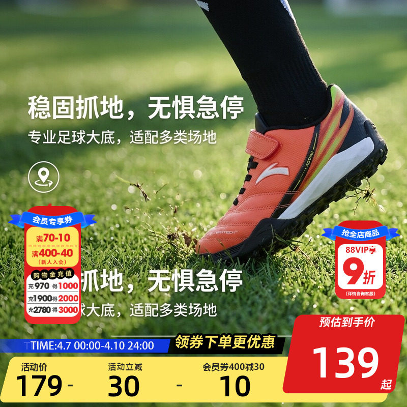 安踏儿童TF碎钉足球鞋男大童运动鞋春夏新款防滑专业训练鞋球鞋子