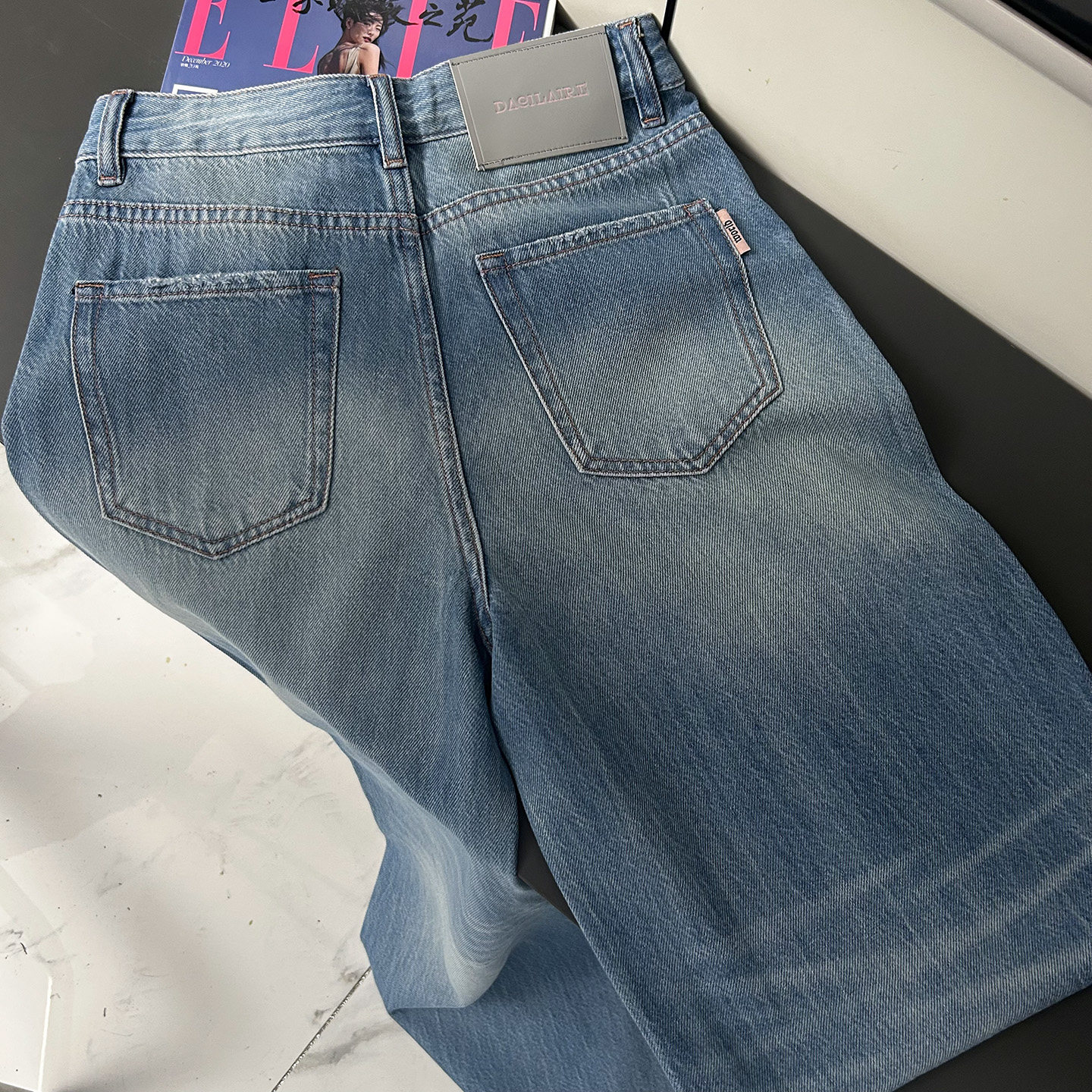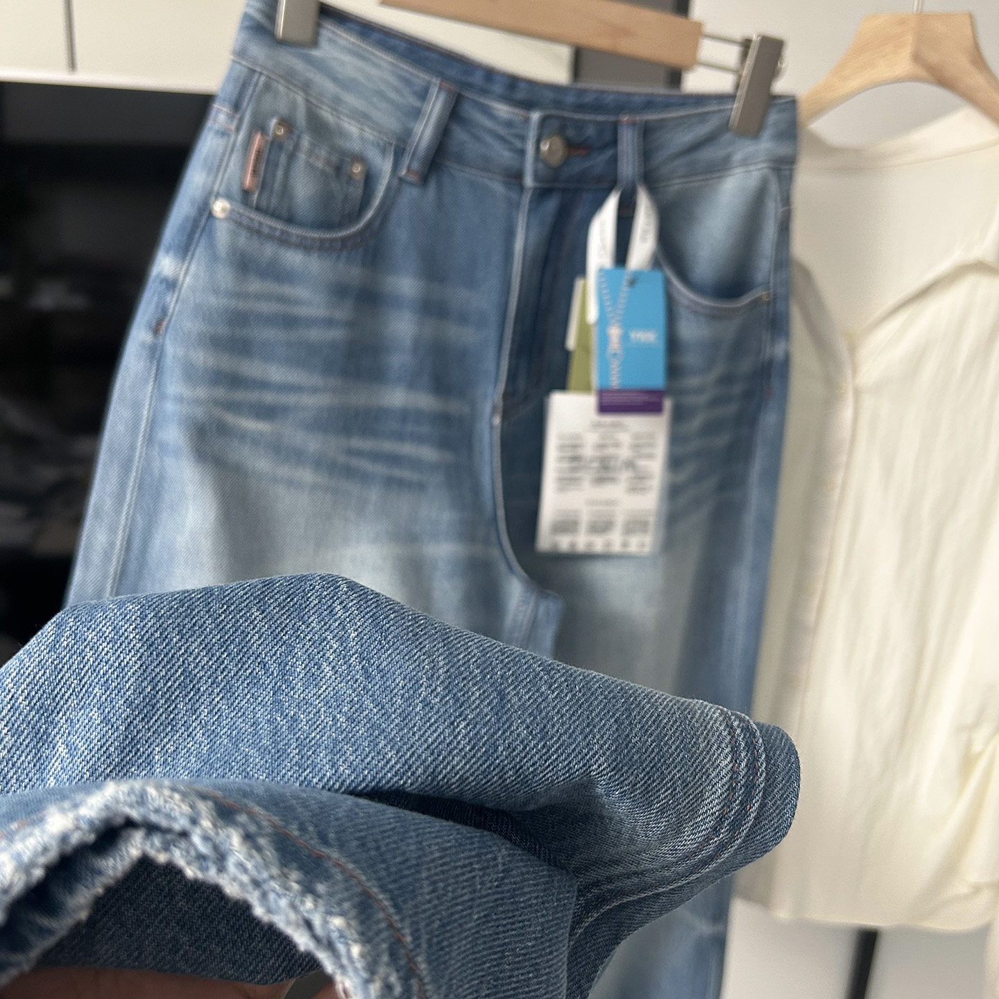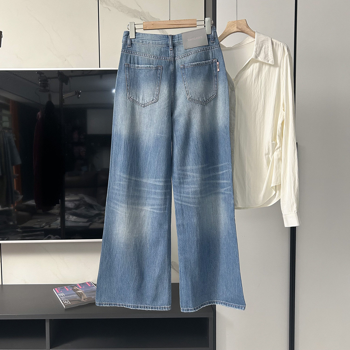 超级软的裤子 高腰阔腿牛仔裤女款夏季蓝色宽松显瘦直筒拖地长裤