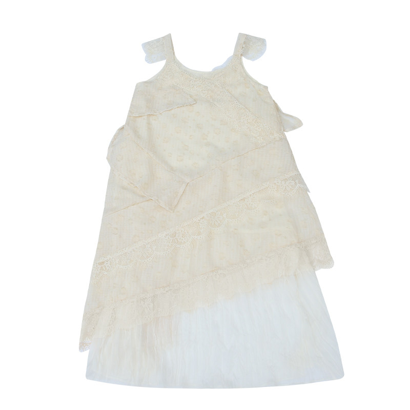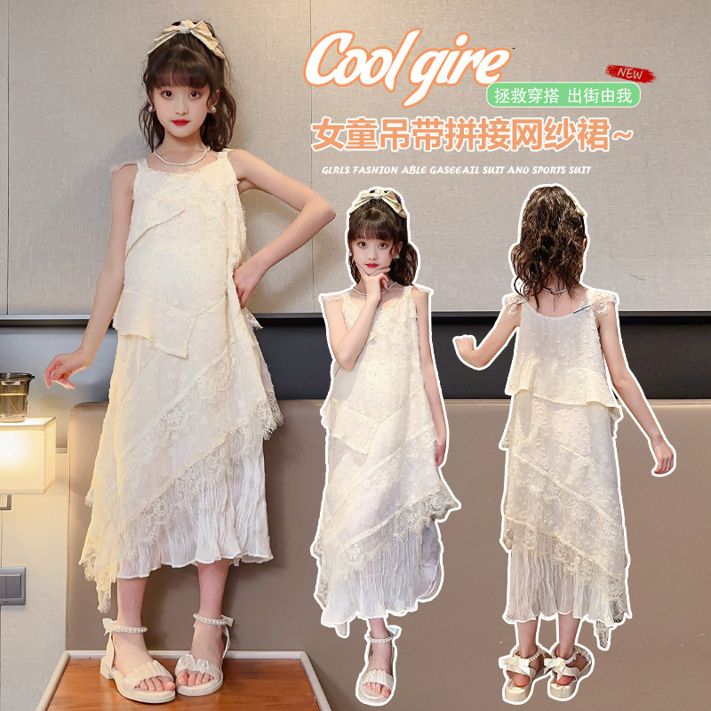 女童连衣裙2025新款夏季无袖荷叶边中长裙蕾丝吊带气质高级感裙子