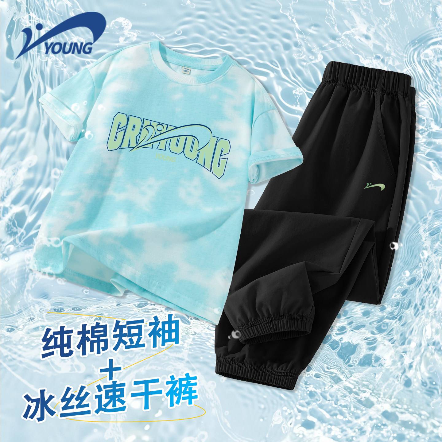 贵人鸟童装儿童套装2026新款男童夏季纯棉短袖t恤男孩冰丝运动裤