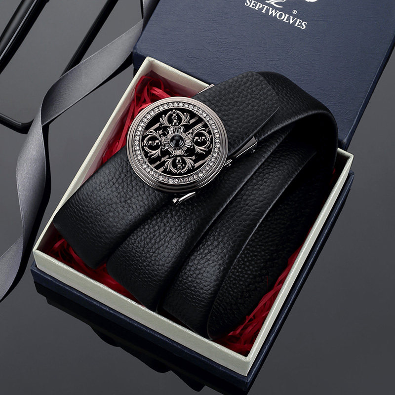 七匹狼皮带男真皮头层牛皮自动扣2023新款胖大码加长150男士腰带