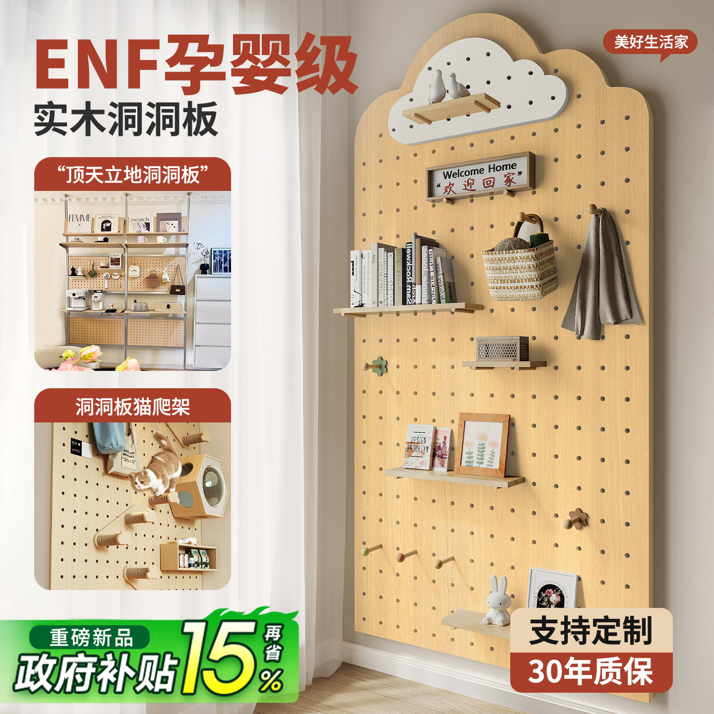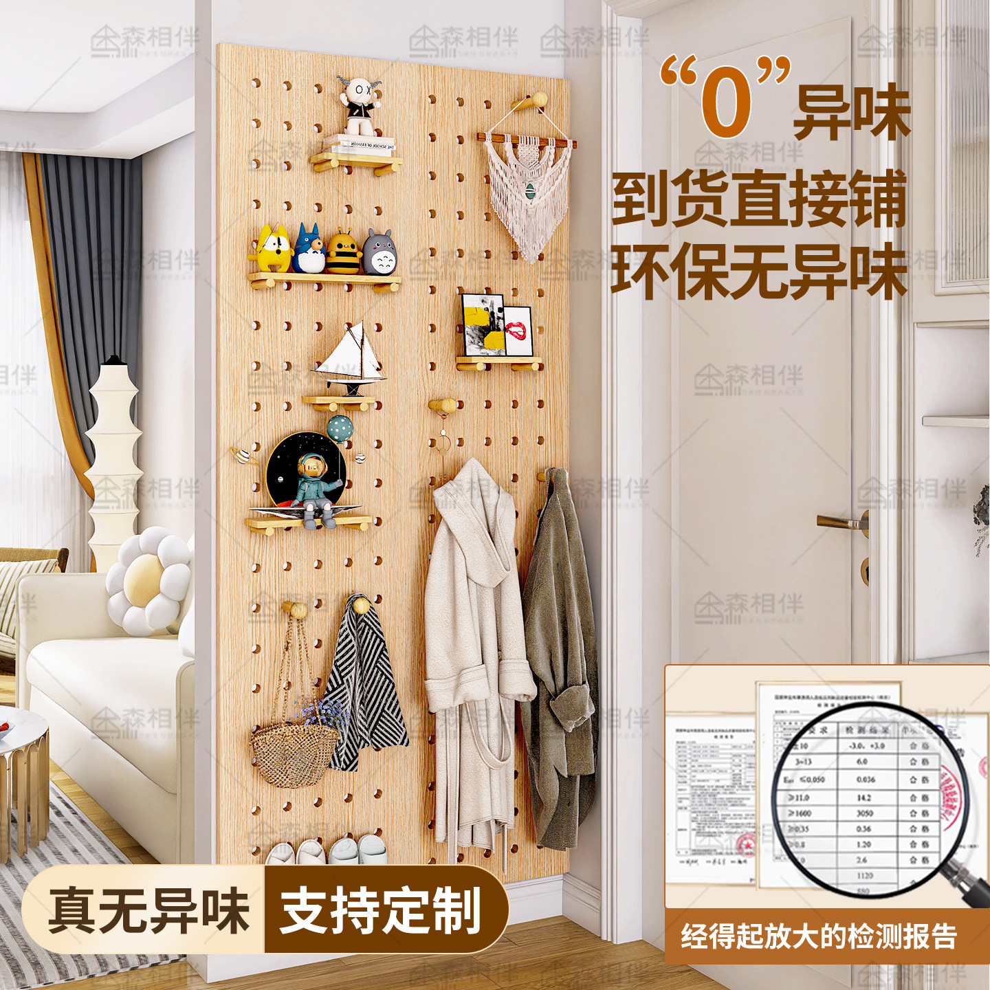 311线报网描述:实木洞洞板定制玄关墙上置物架墙面展示收纳
