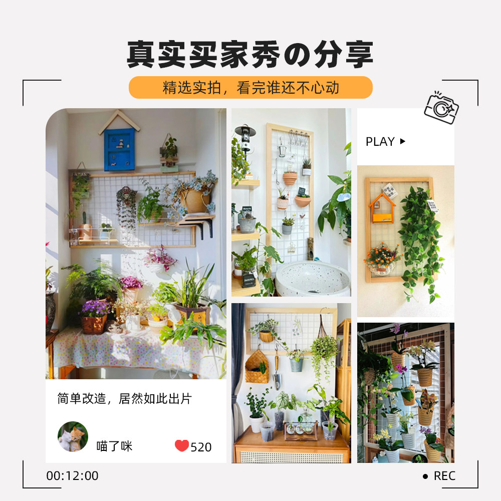 阳台墙面花架网格壁挂式绿植架实木悬挂置物架铁艺室内花架子装饰
