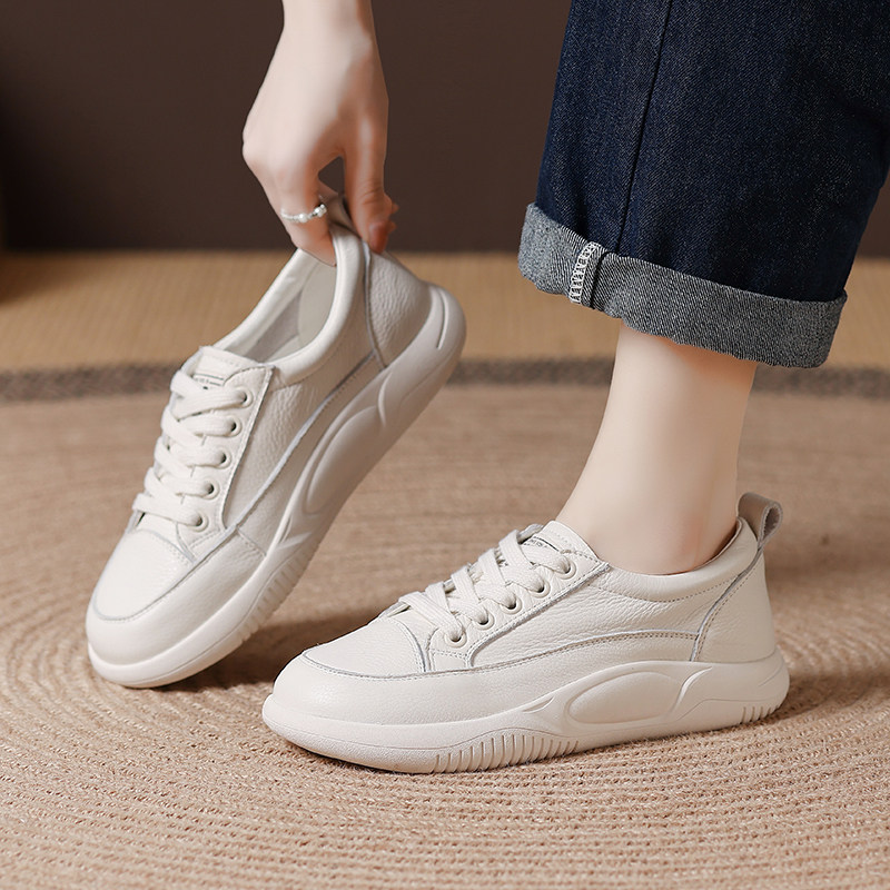 头层牛皮运动休闲女鞋2026春秋新款百搭平底女鞋软皮妈妈小白鞋