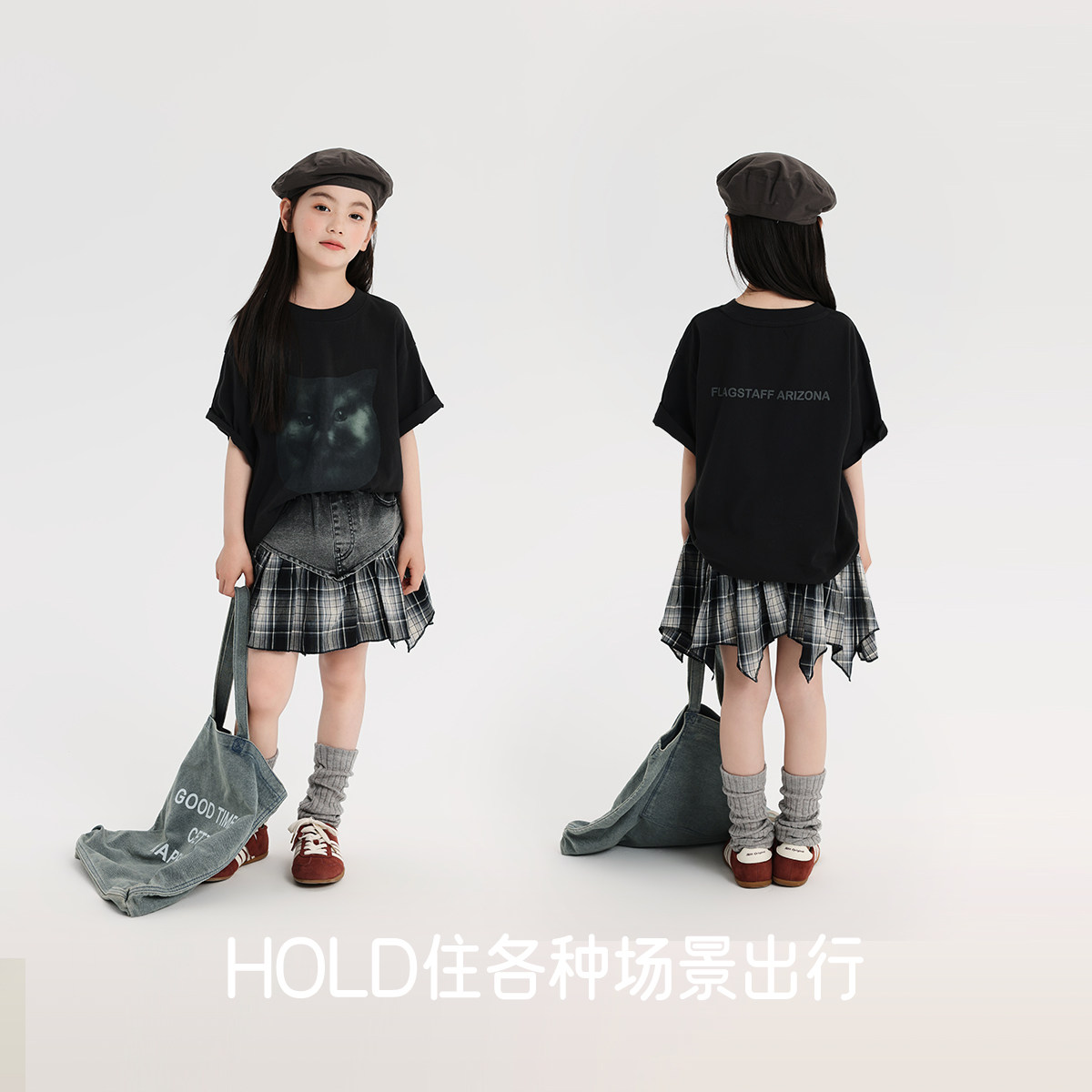 布丁哈鲁童装夏装女童短裙子2026夏季新款儿童甜酷牛仔拼接半身裙