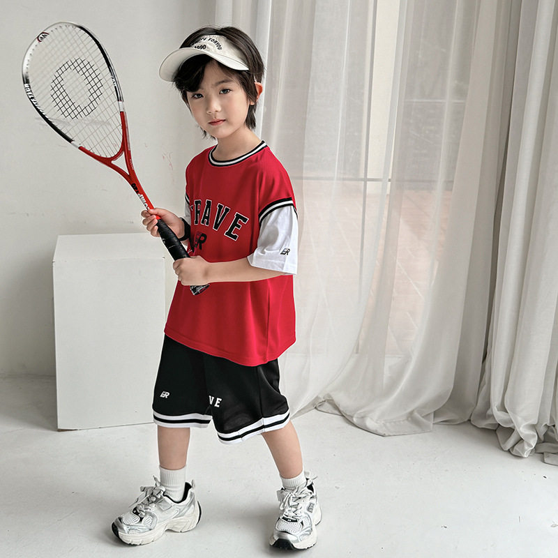 海妈家2026夏季新款男童篮球服运动套装短袖短裤两件套夏装中大童