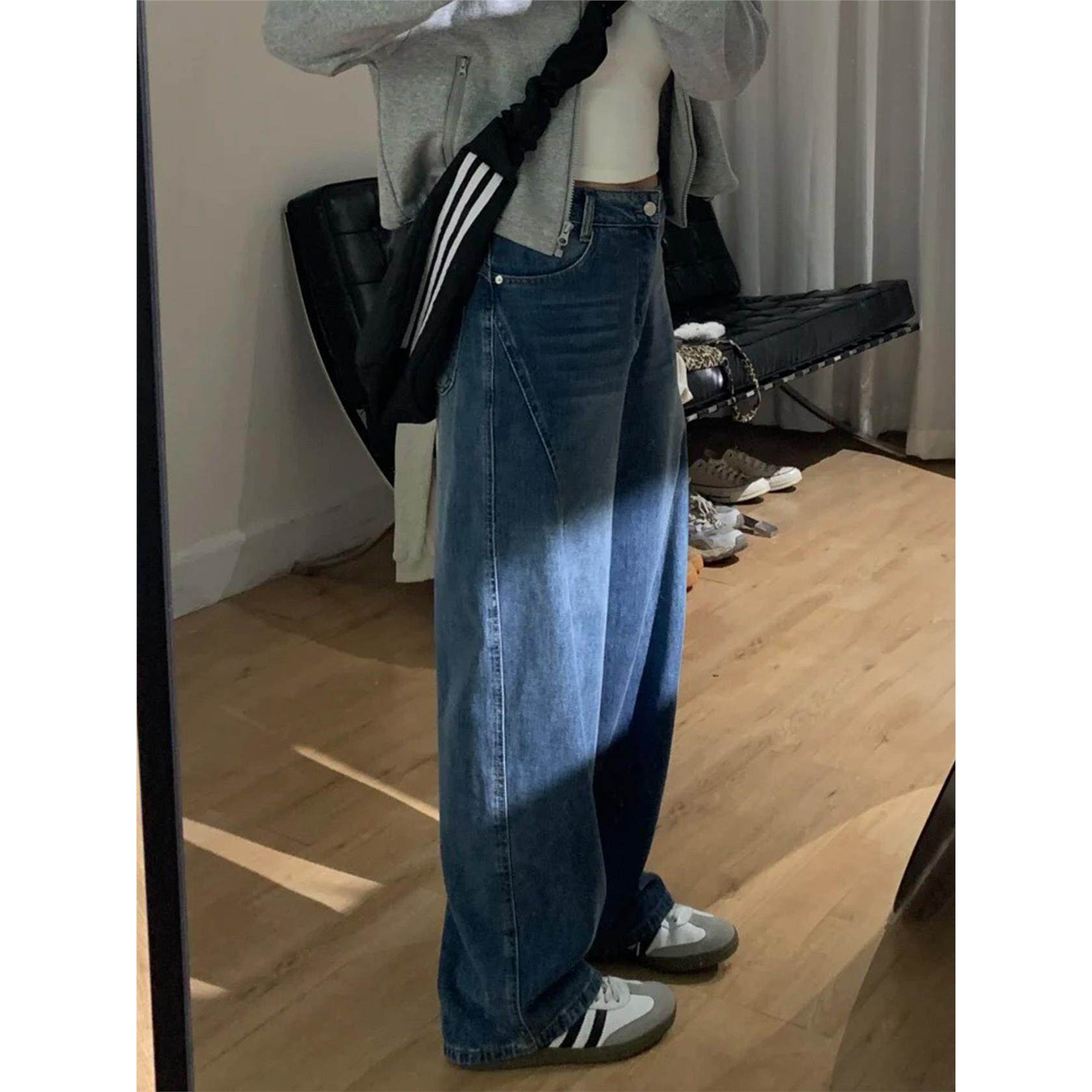 高腰弯刀阔腿牛仔裤女款大码胖mm显瘦裤子梨型身材粗腿宽胯镰刀裤