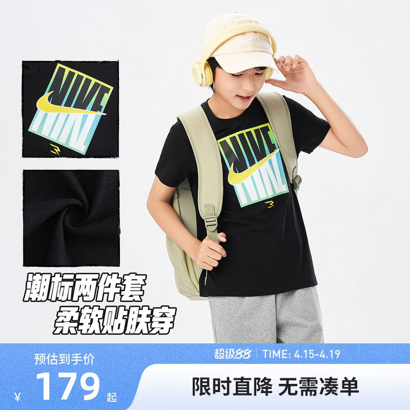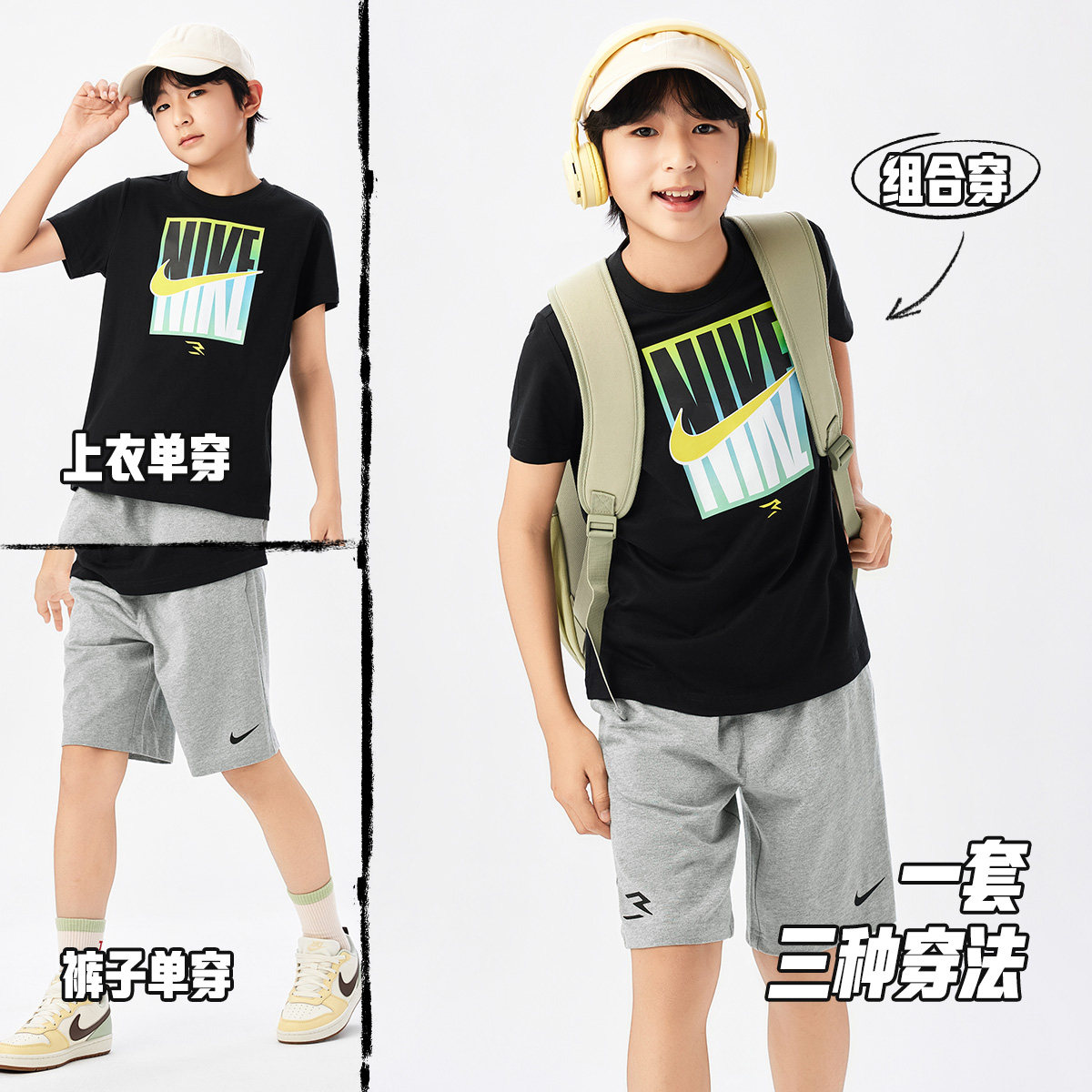 Nike 3brand儿童套装男童短袖T恤短裤五分裤子女童运动两件套夏季