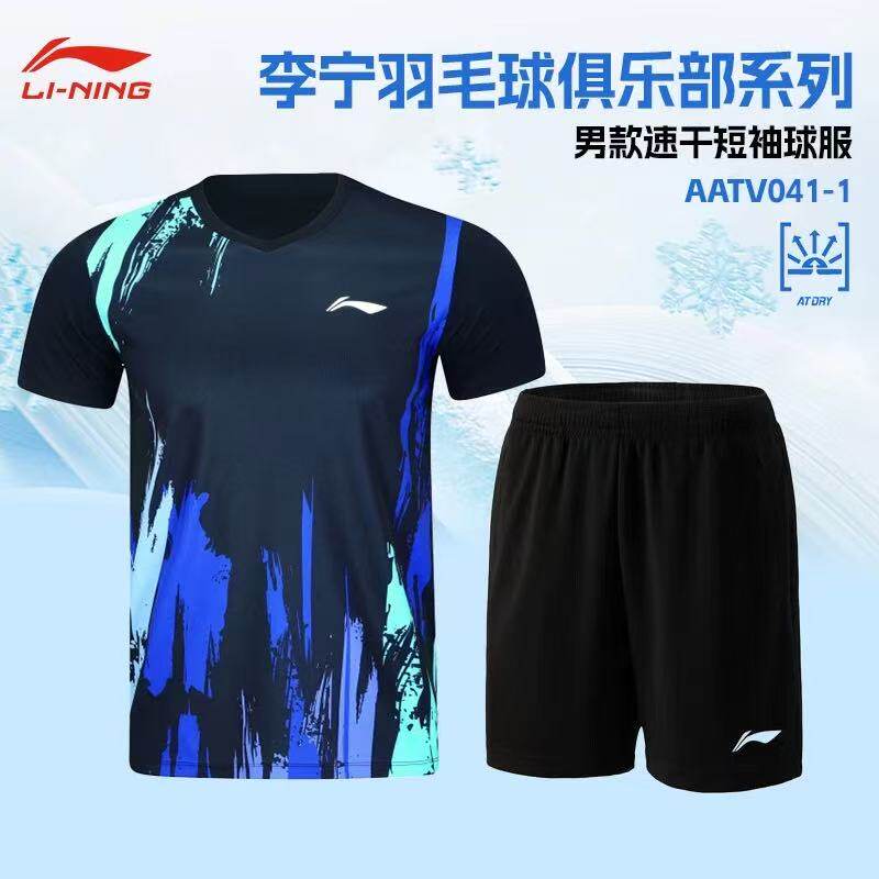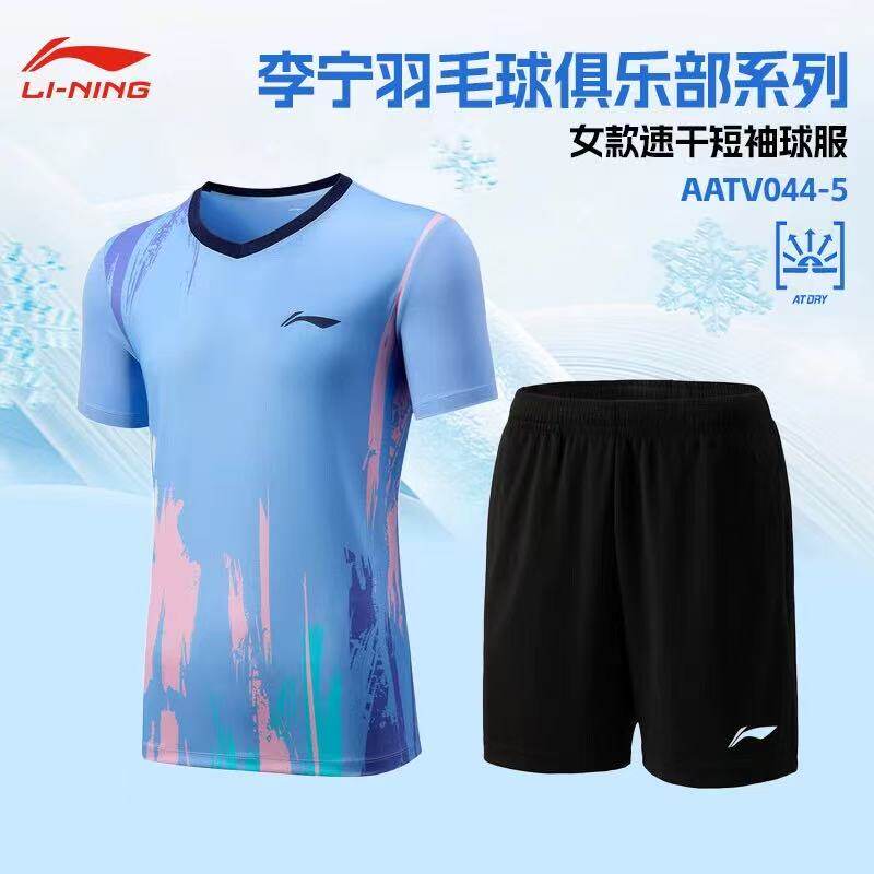 李宁羽毛球服俱乐部系列比赛套装速干男女款短袖球服套装