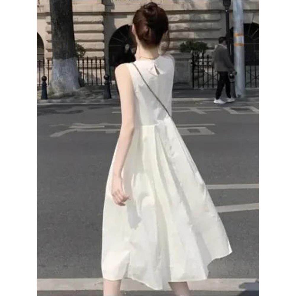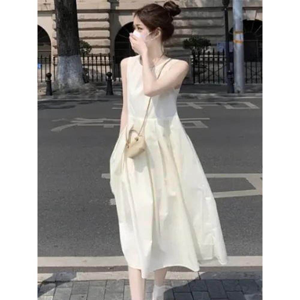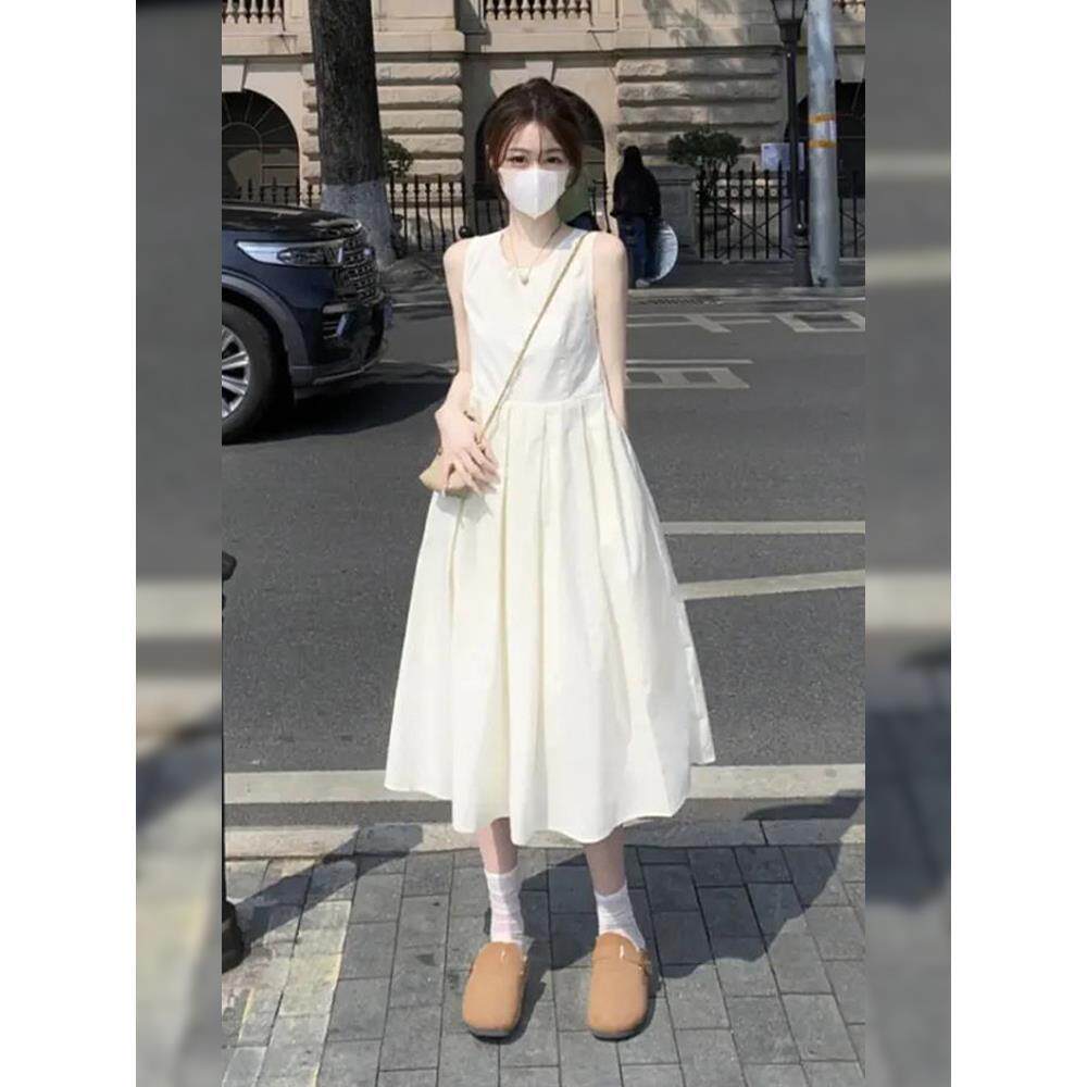 150小矮个子法式无袖连衣裙女夏季高级感吊带裙收腰中长款背心裙
