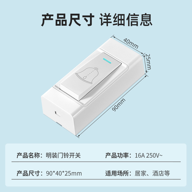 明装门铃开关面板自动复位按钮220v自复位老式门铃回弹回位开关