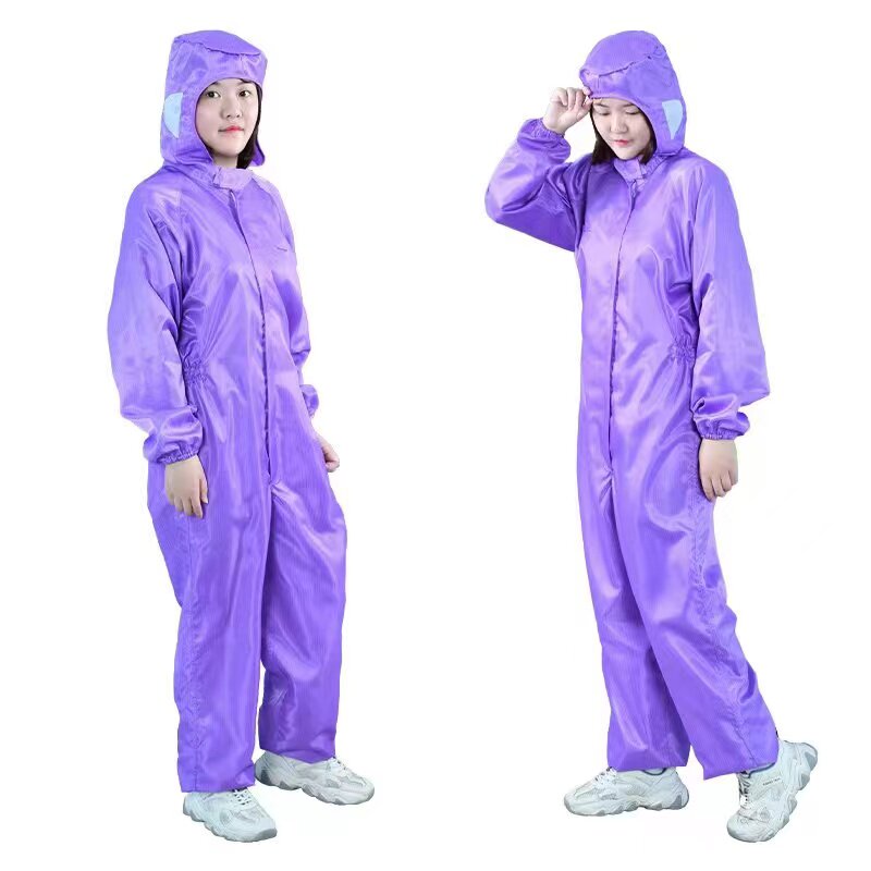 橙色防静电无尘服紫色洁净服连体防尘工作服车间连帽净化服一体式