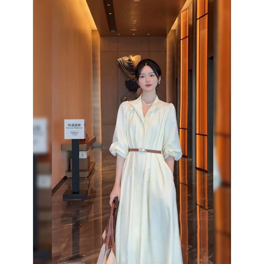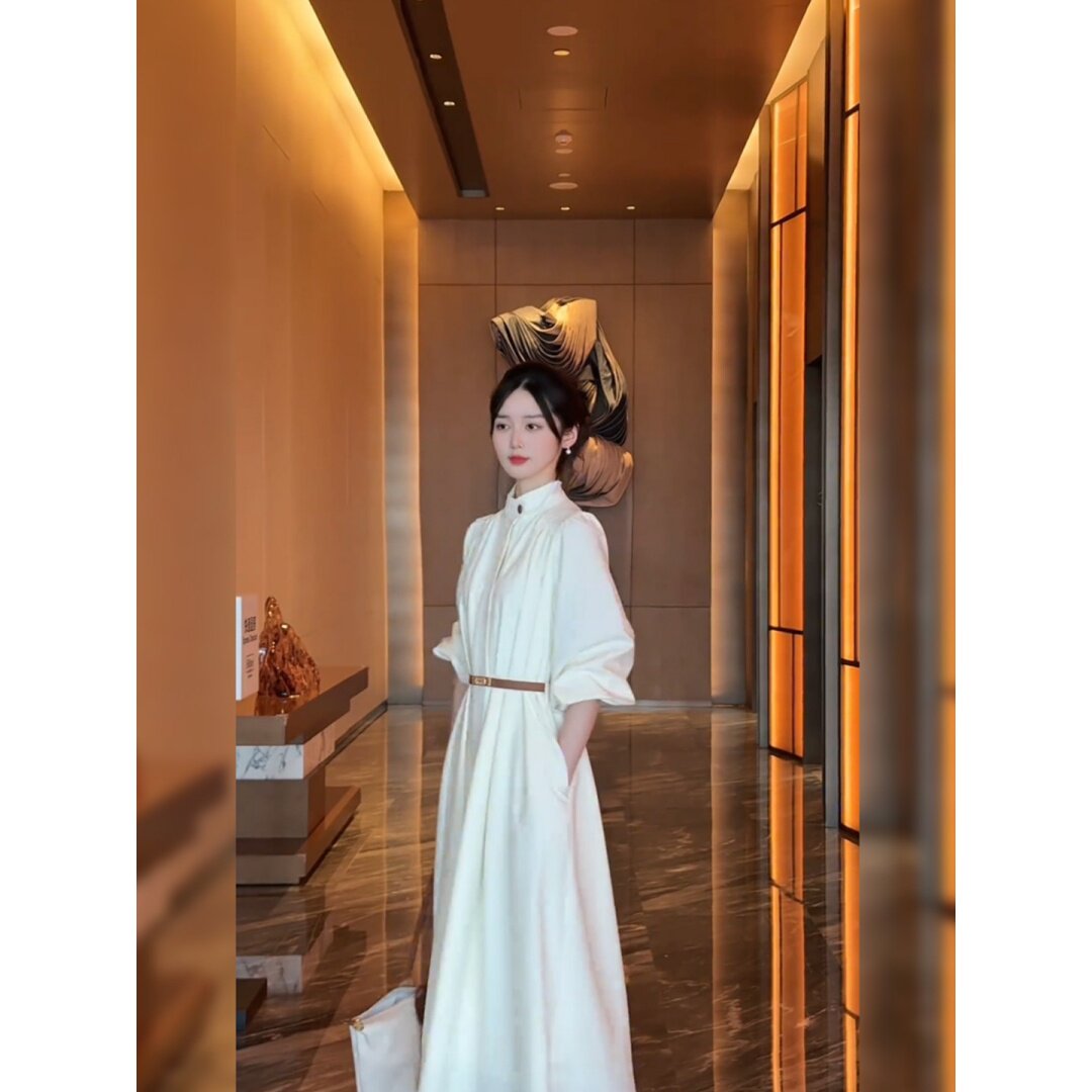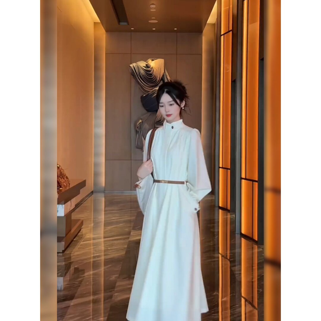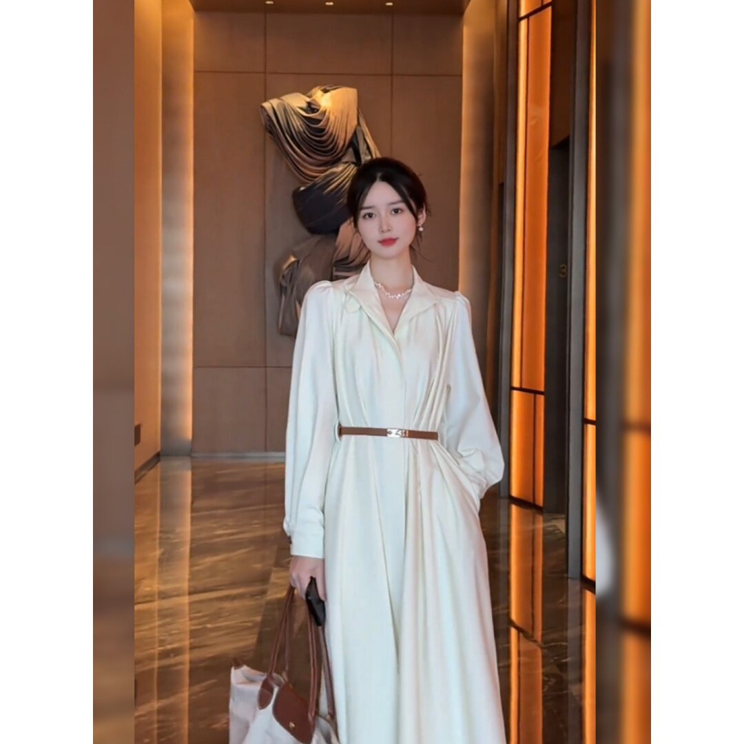大码胖mm轻奢法式白色连衣裙女装春季收腰长裙气质温柔风显瘦裙子