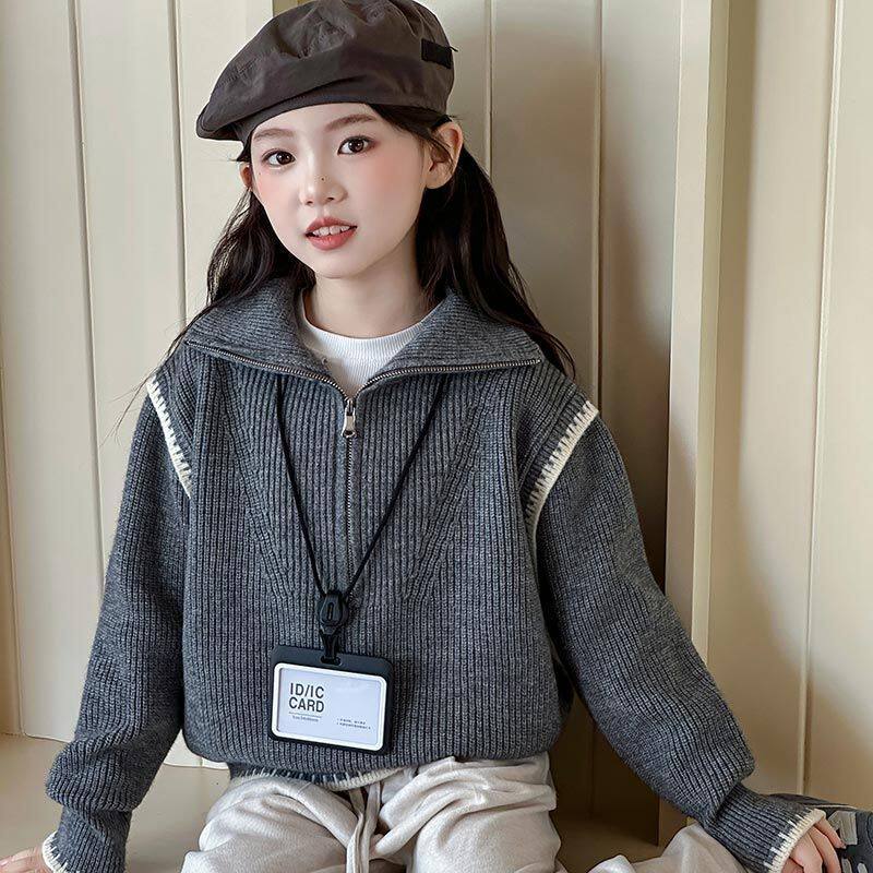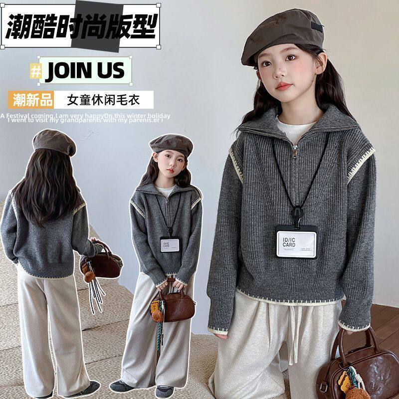 女童毛衣秋冬装2026新款洋气时髦半拉链儿童毛线衣针织外套上衣潮