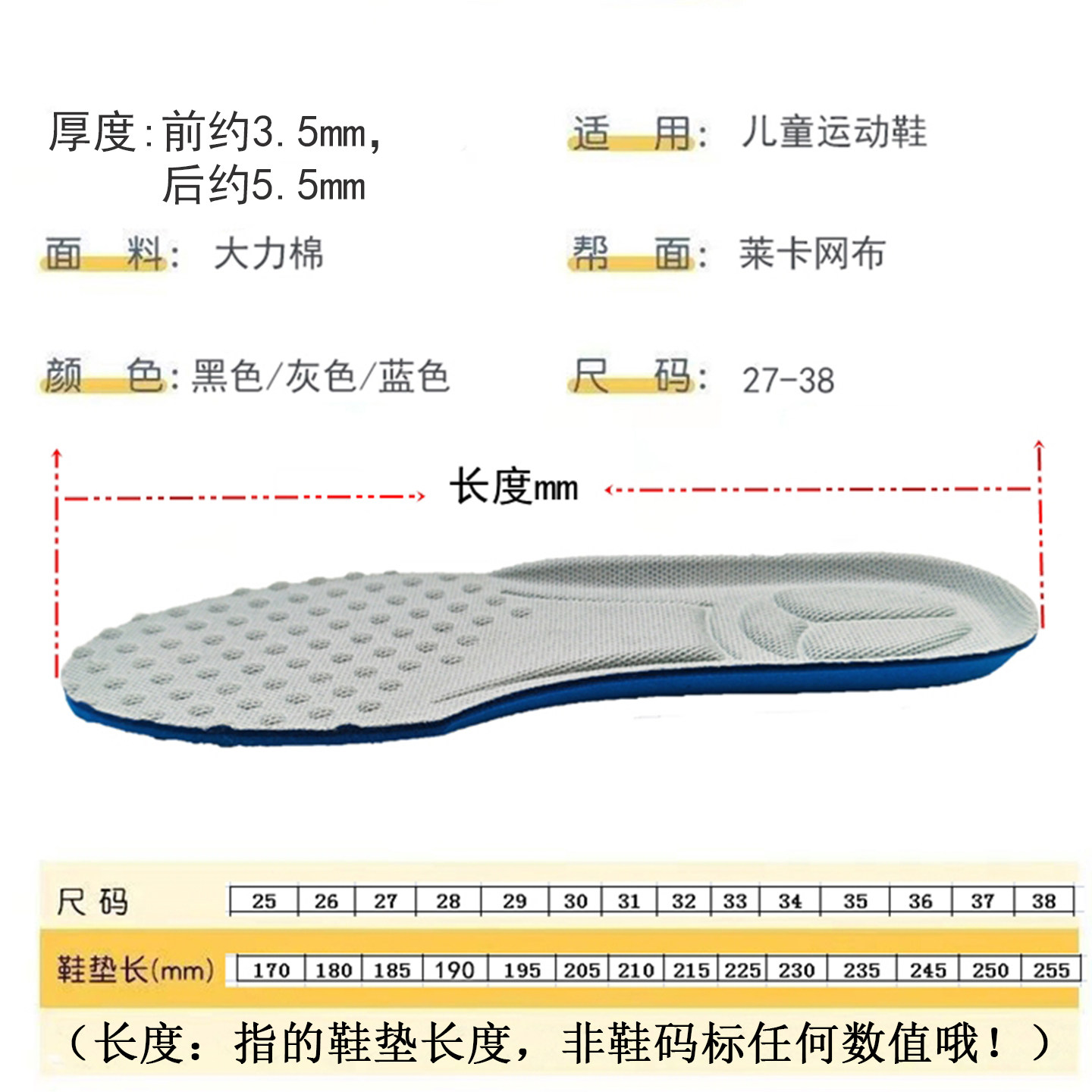 适用于回力儿童运动鞋垫透气吸汗减震高弹力软底舒适加厚可裁剪