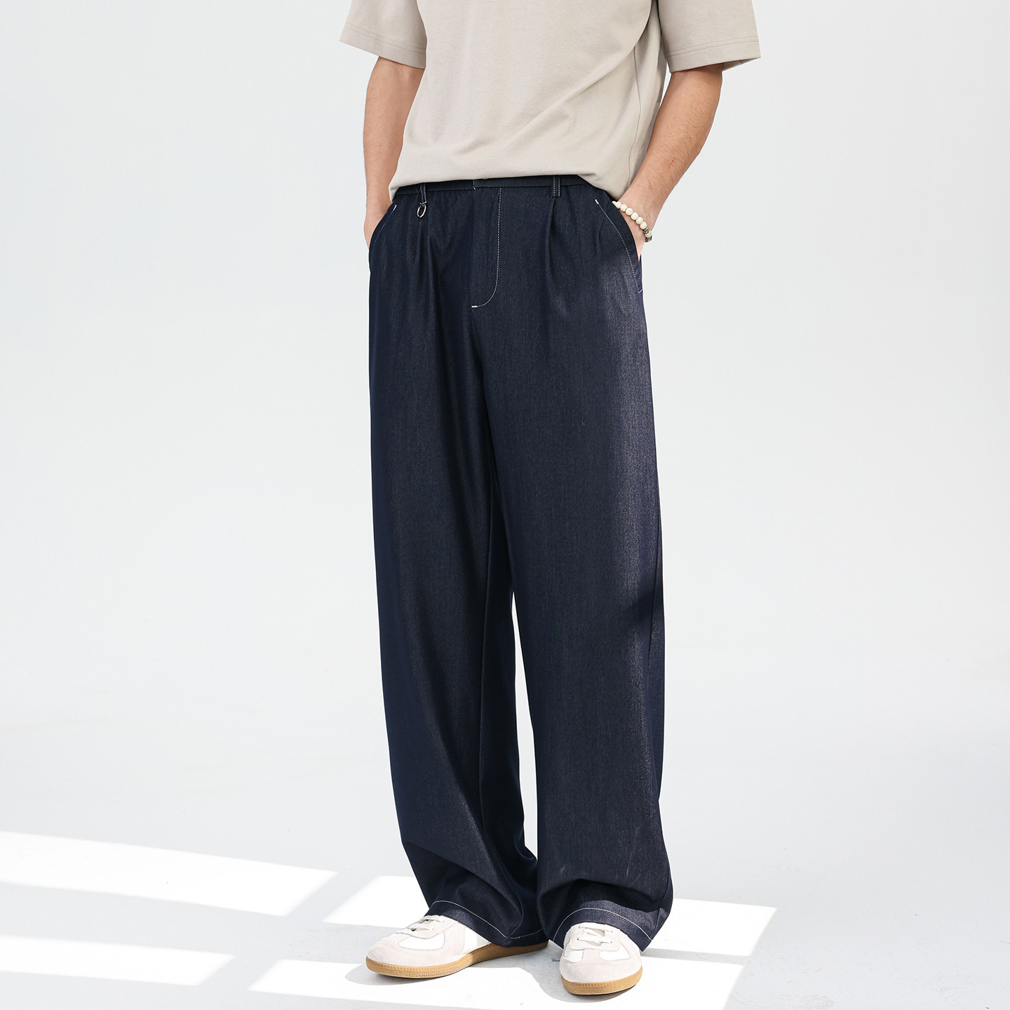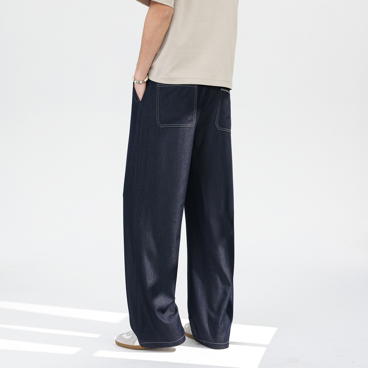 男士宽松刺绣美式休闲裤男款裤子2026新款牛仔蓝阔腿裤微弹直筒裤